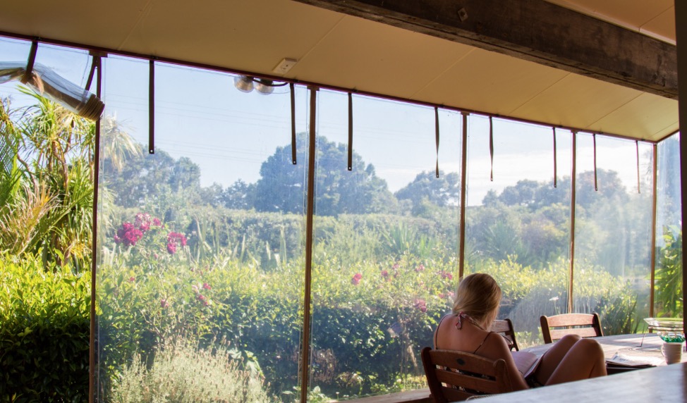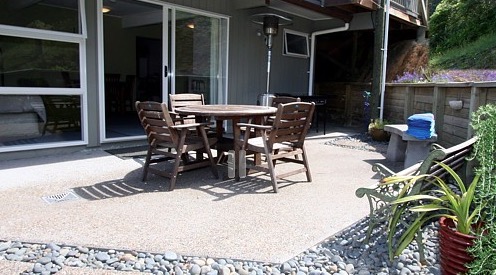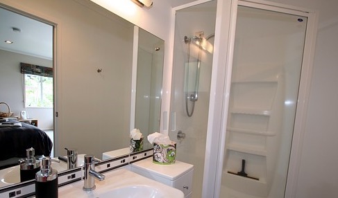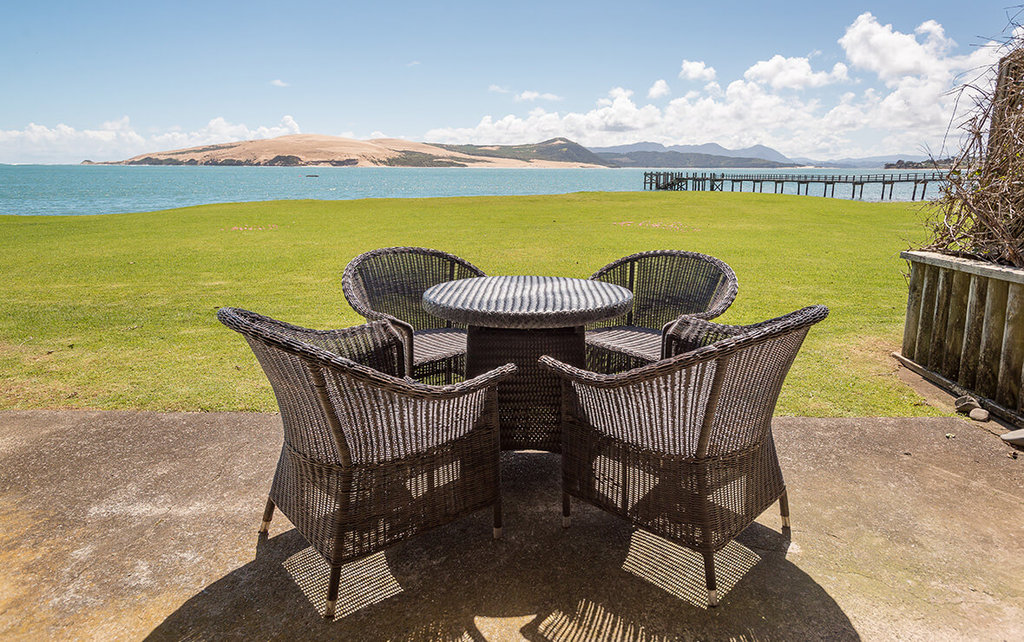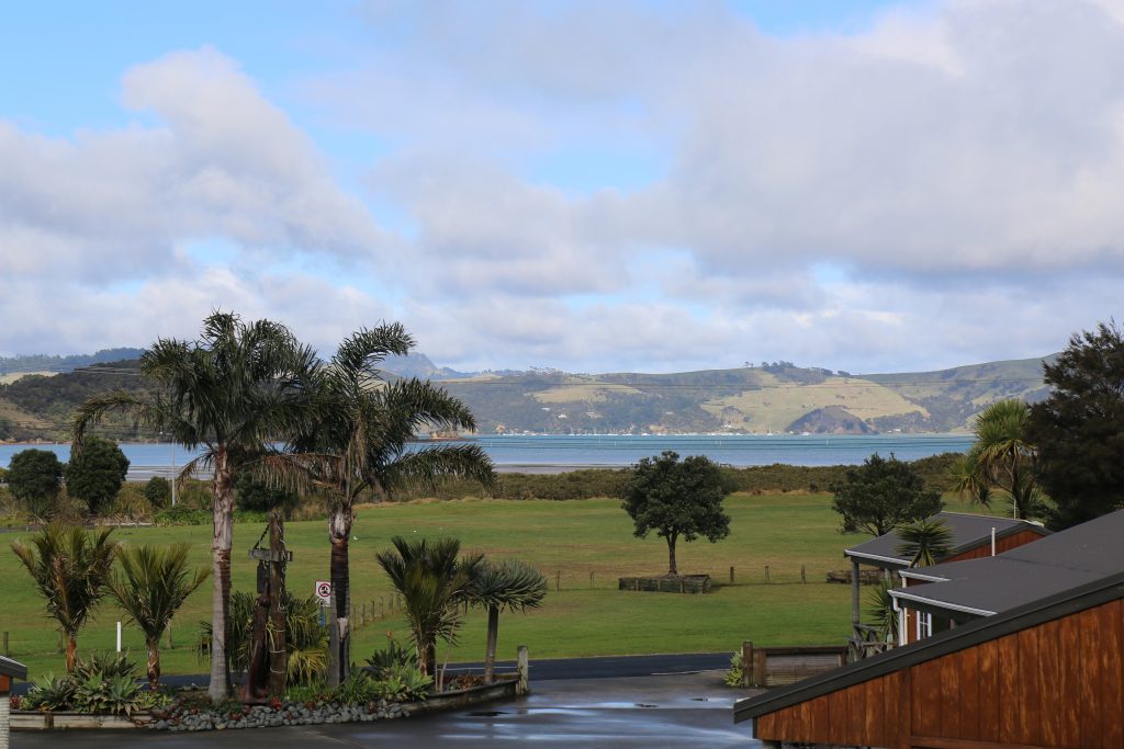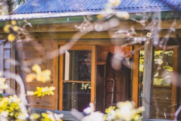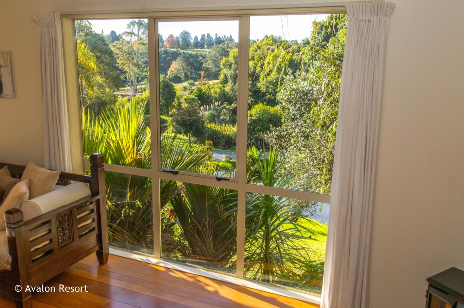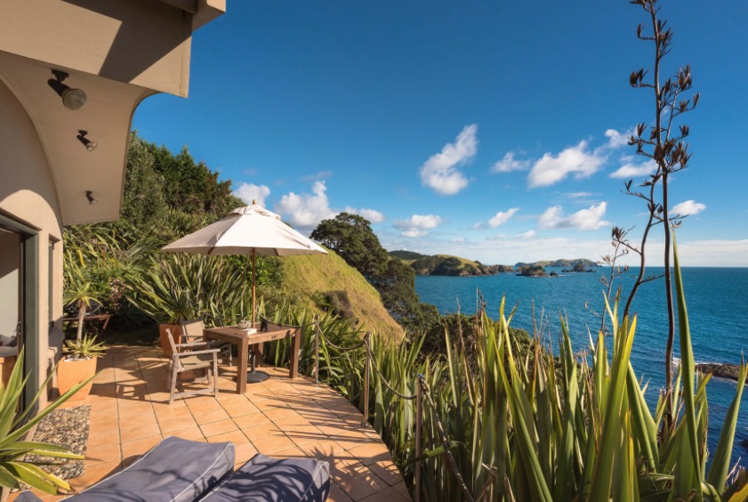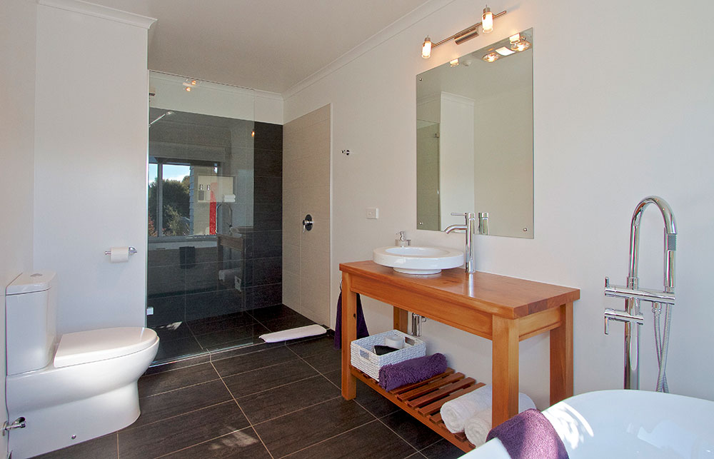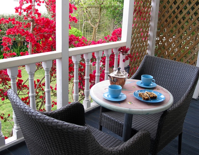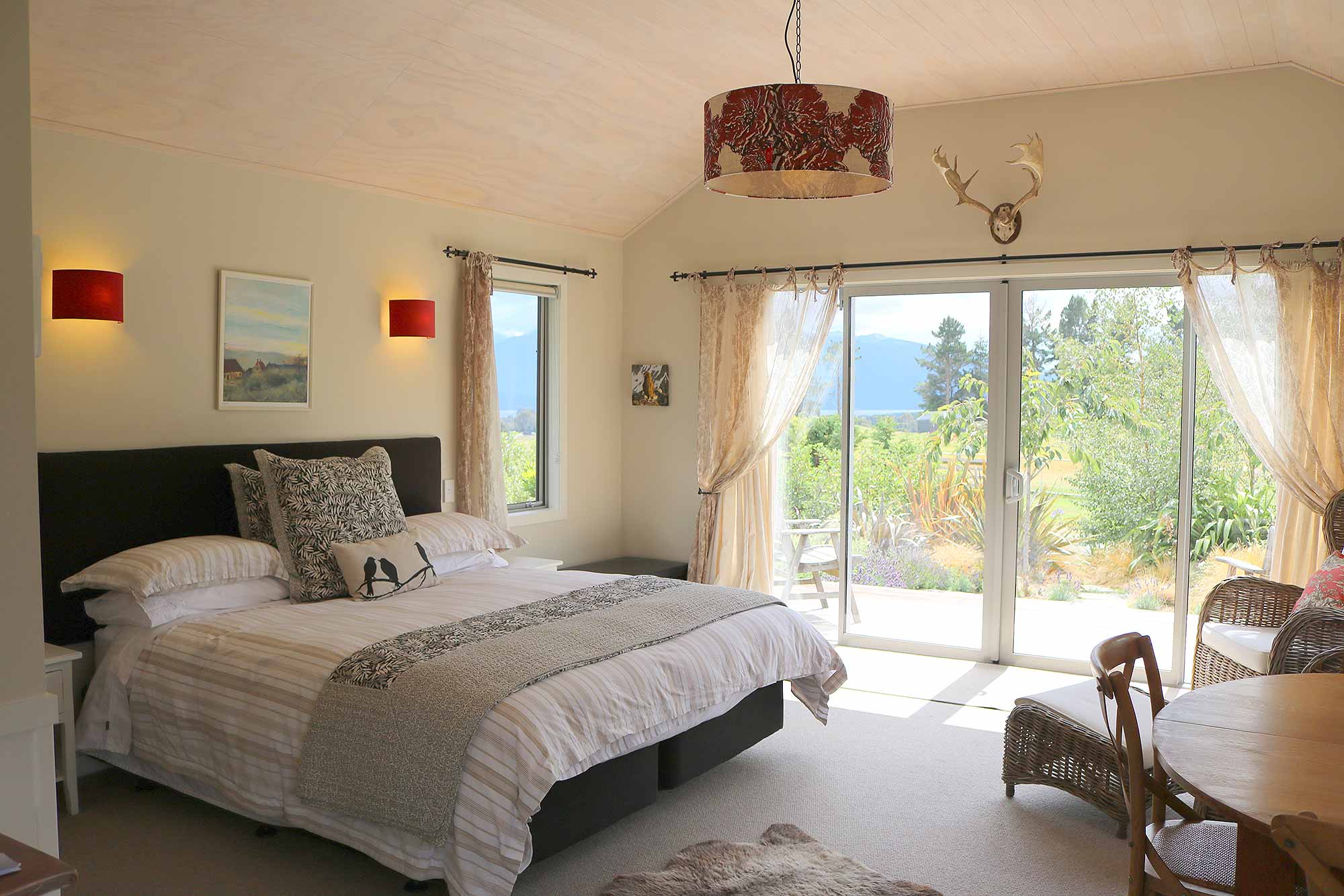 Draußen hast du deinen eigenen privaten Sitzbereich und kannst dort einen tollen Blick auf neuseeländisches Buschland genießen. Hier hörst du nur die Vögel singen.