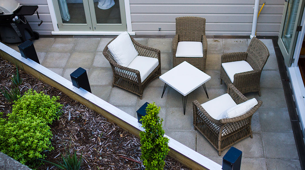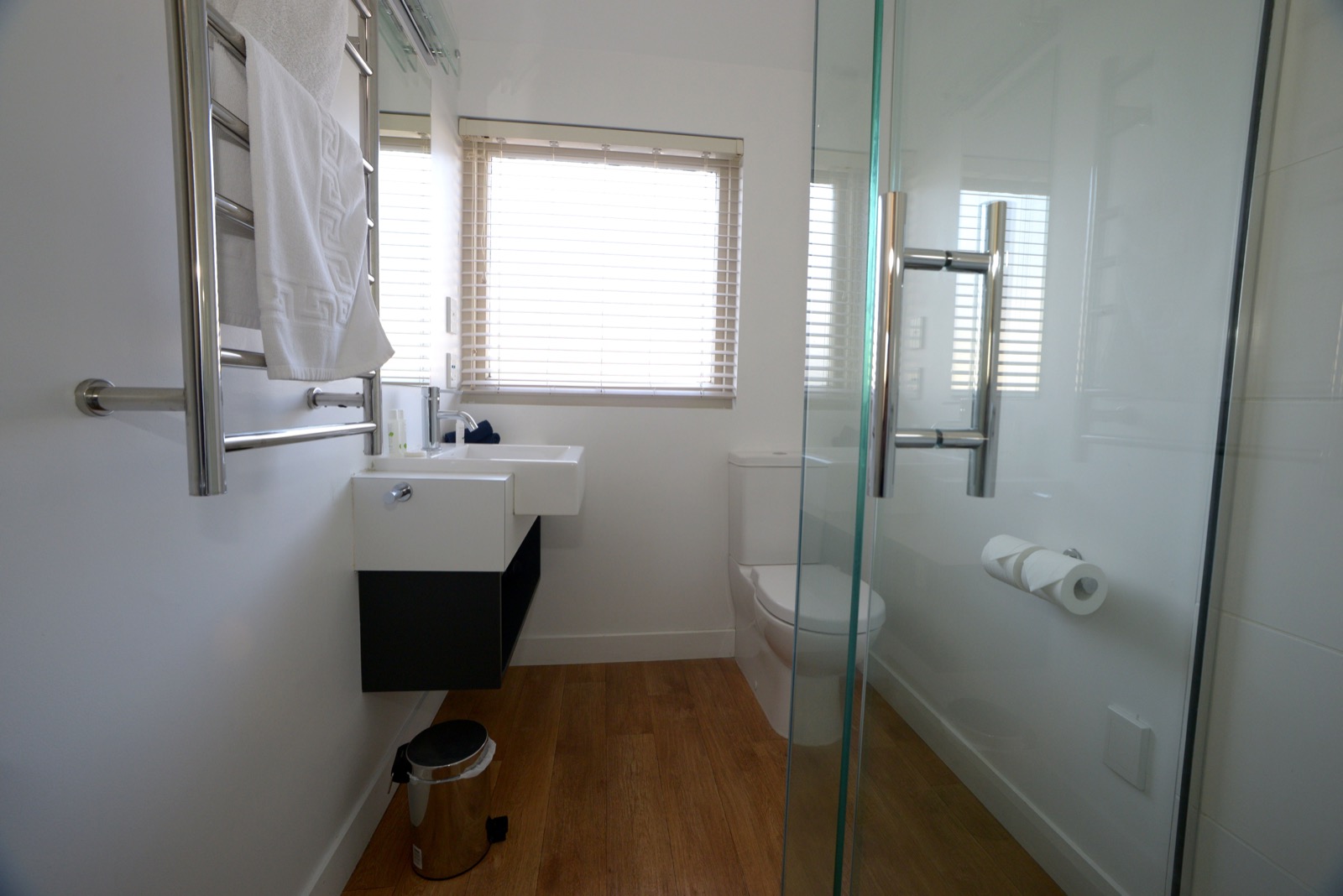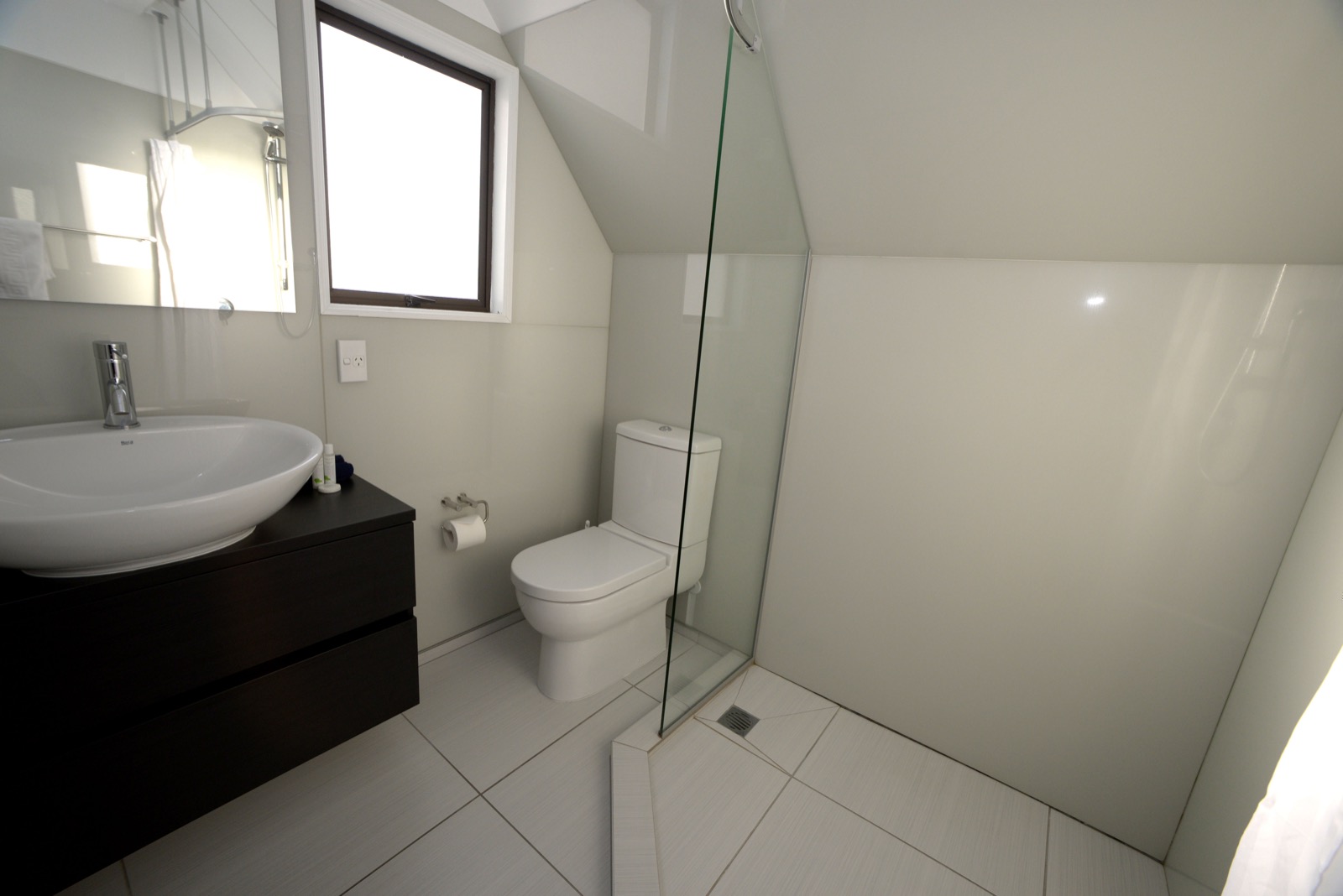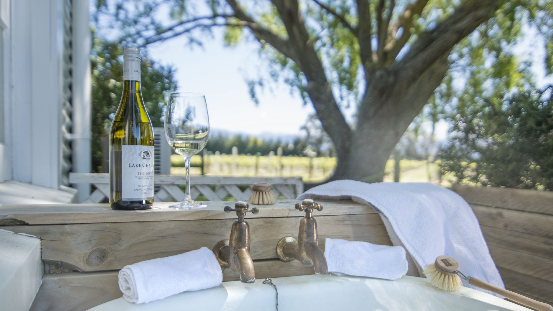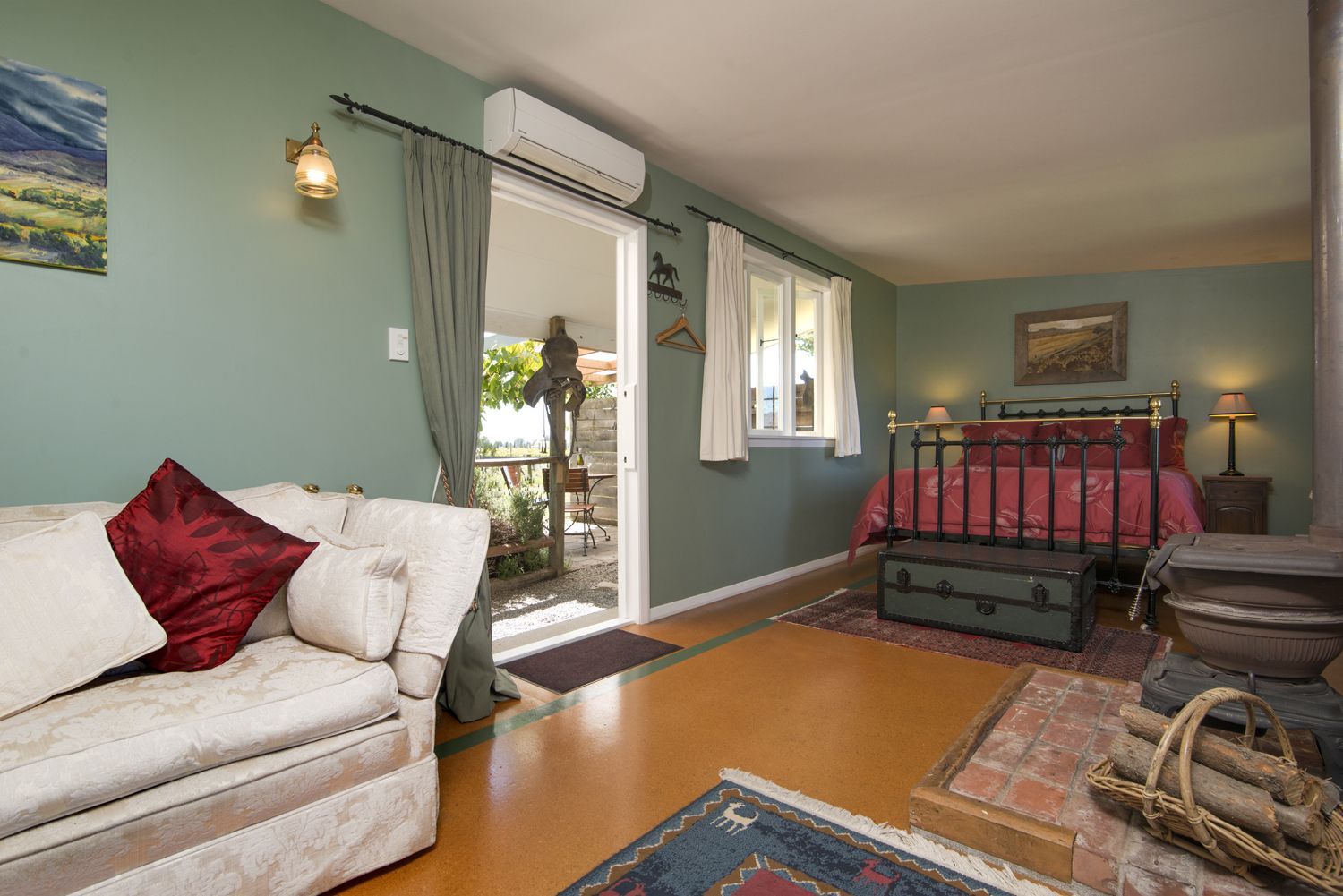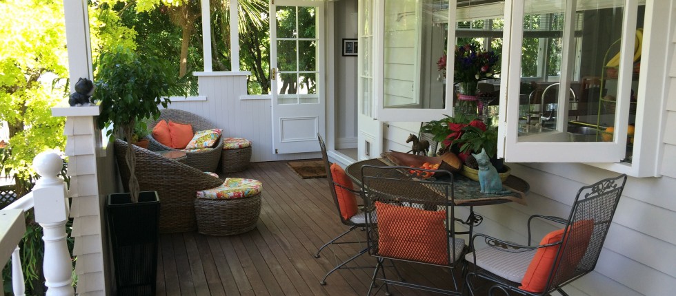 Draußen hast du deinen eigenen privaten Sitzbereich und kannst dort einen tollen Blick auf neuseeländisches Buschland genießen. Hier hörst du nur die Vögel singen.