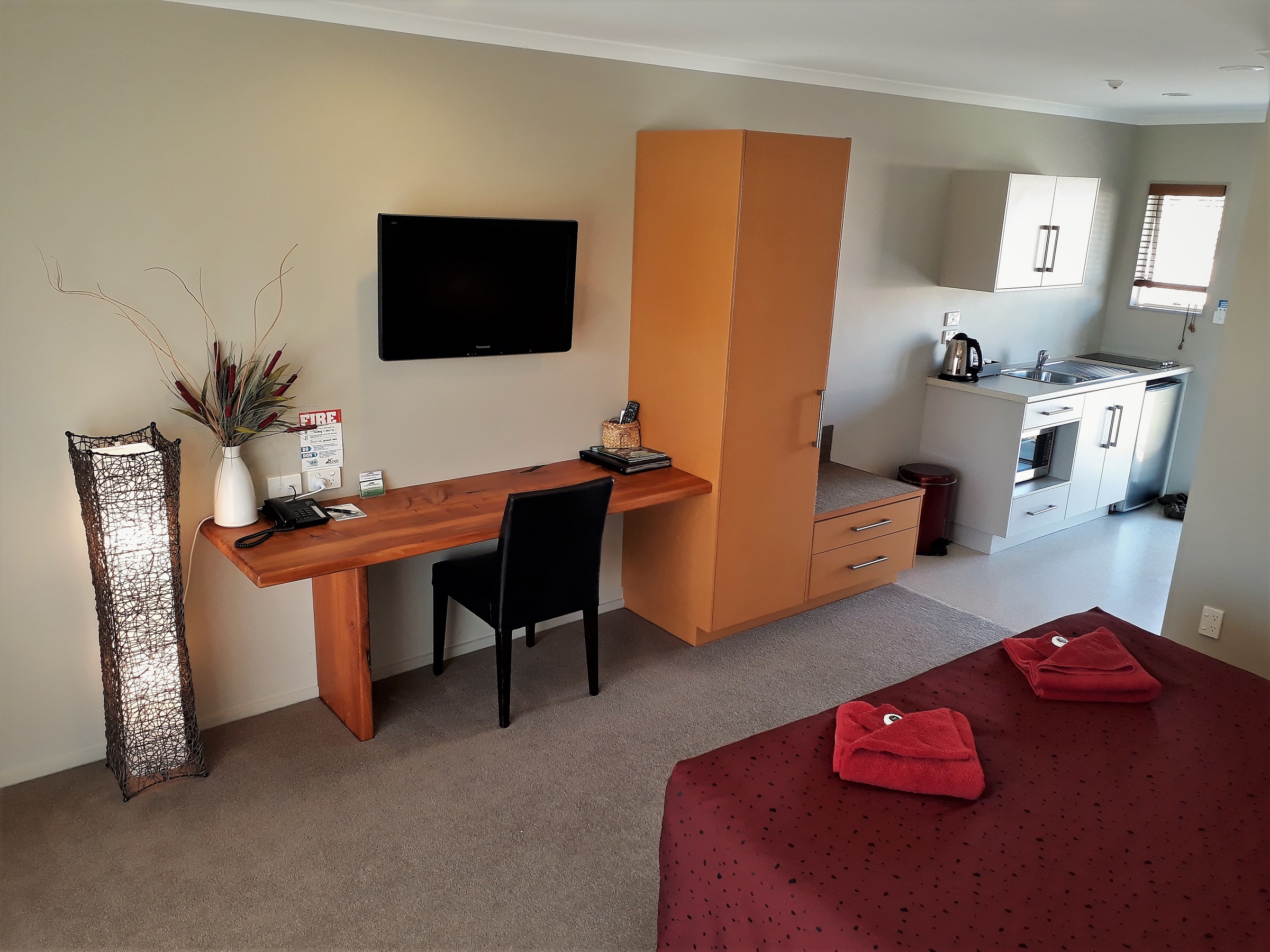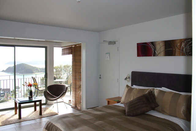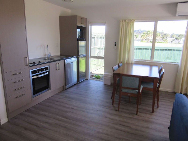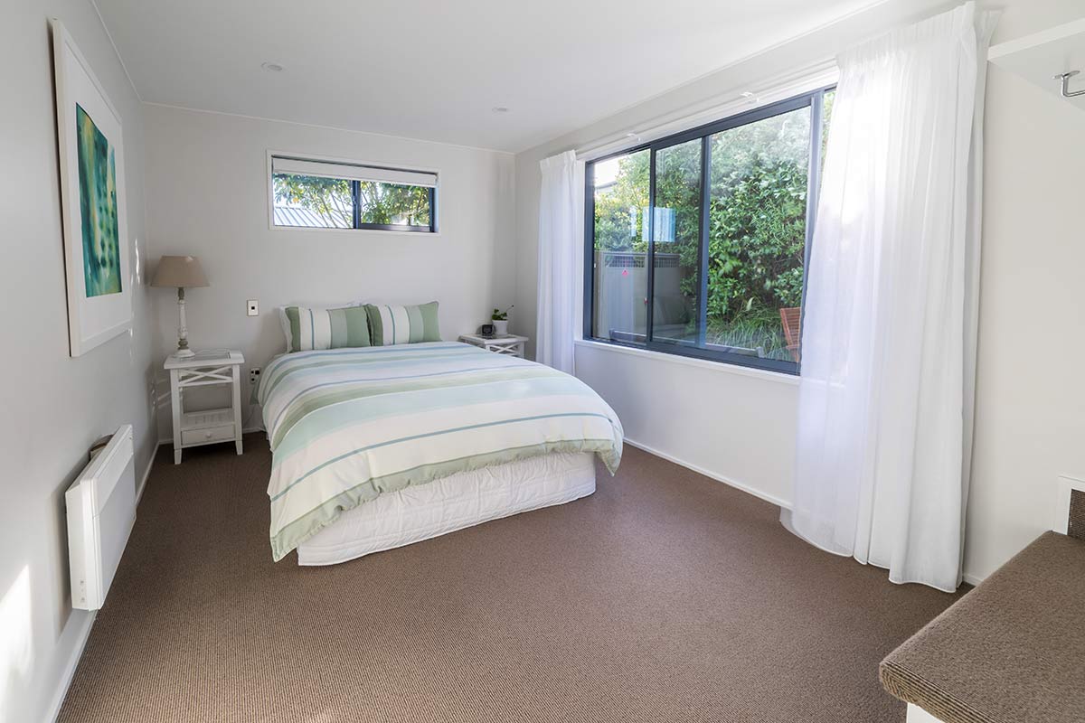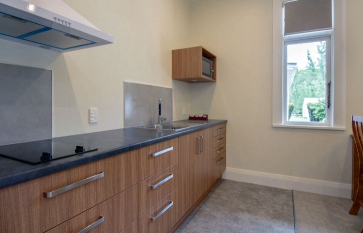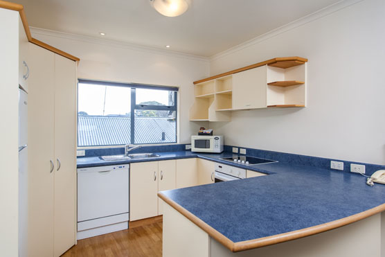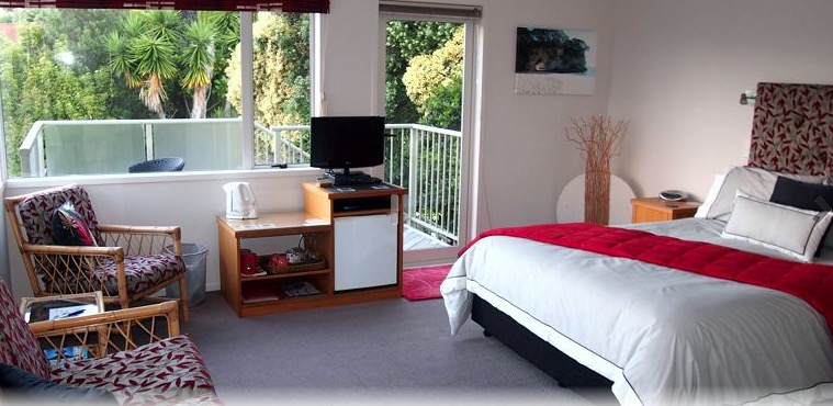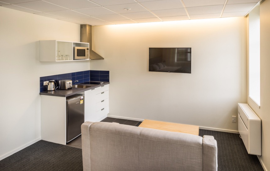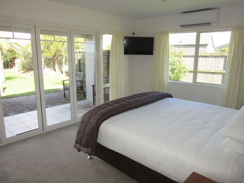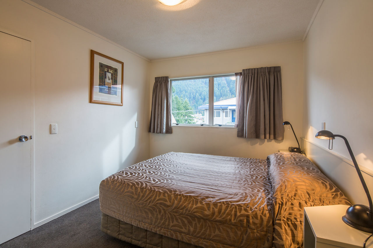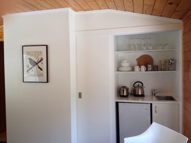 Das Studio (25 qm) verfügt über eine voll ausgestattete Küchenzeile mit einer Mikrowelle, einem Kühlschrank und einem Wasserkocher. Es umfasst auch einen Schreibtisch, einen geräumigen Kleiderschrank und einen Safe im Zimmer. Klimaanlage, ein großes Bad und ein Flachbild-TV mit neuseeländischen Sat-Kanälen stehen zur Verfügung.