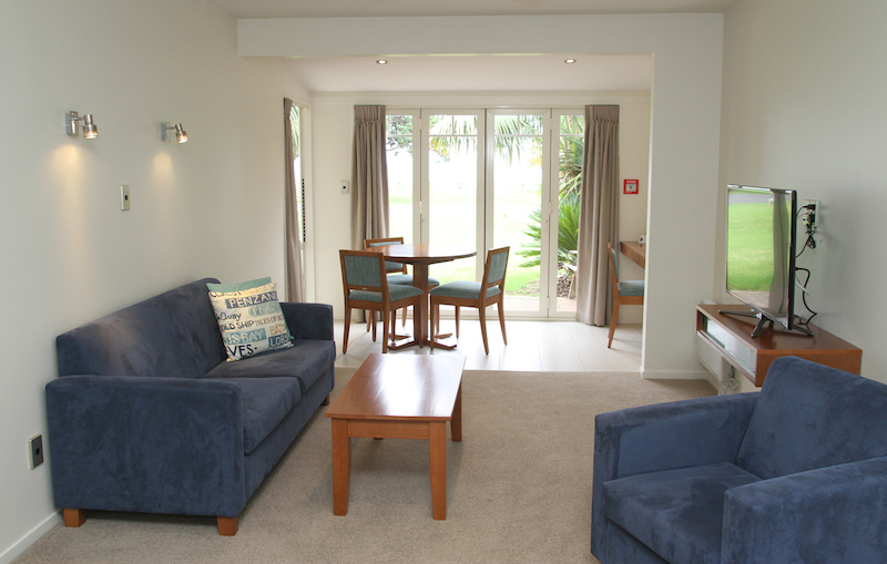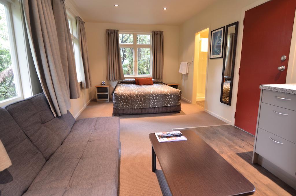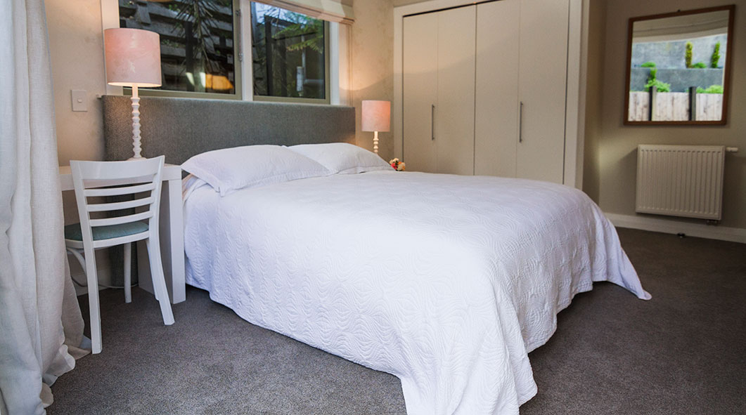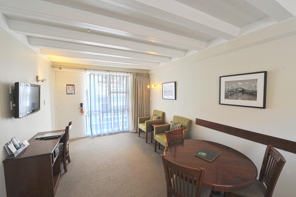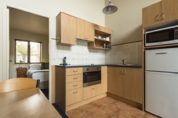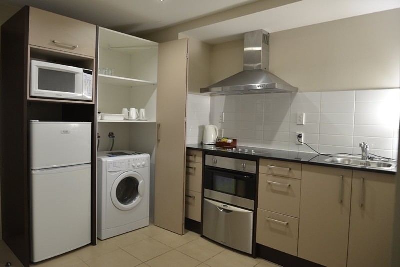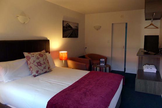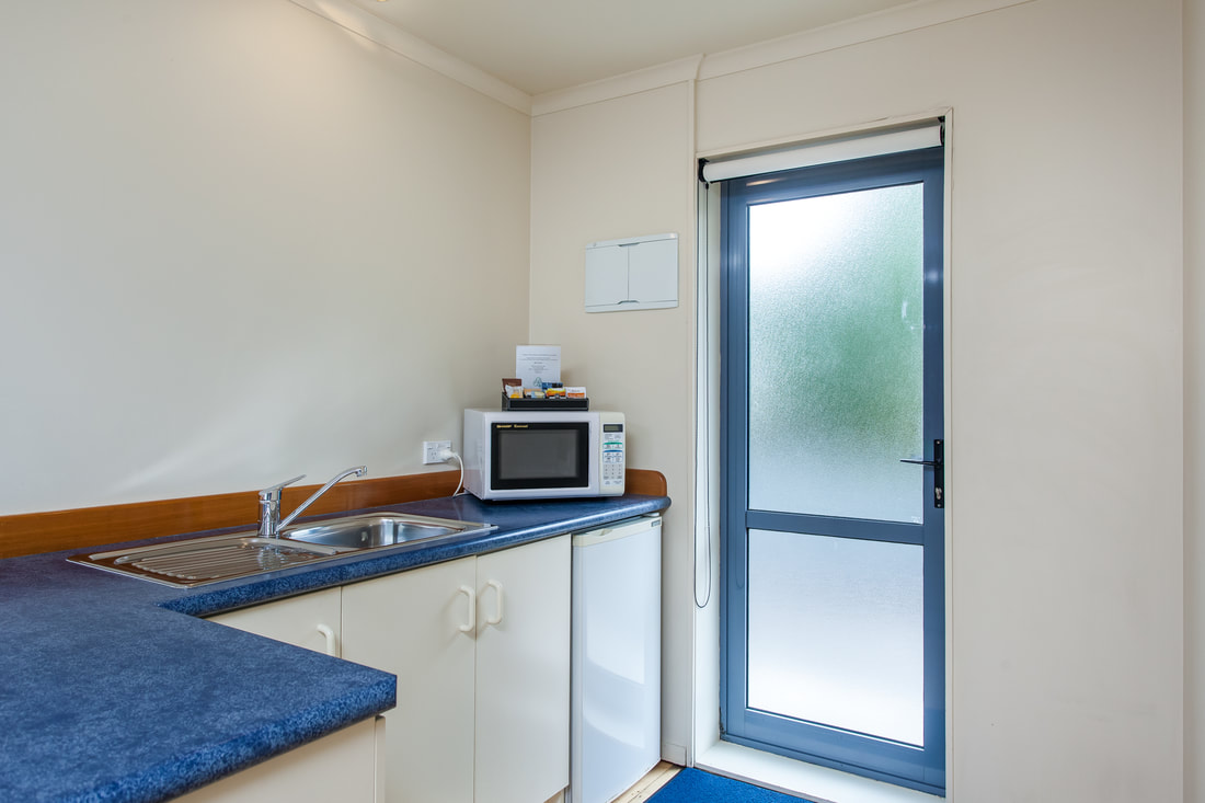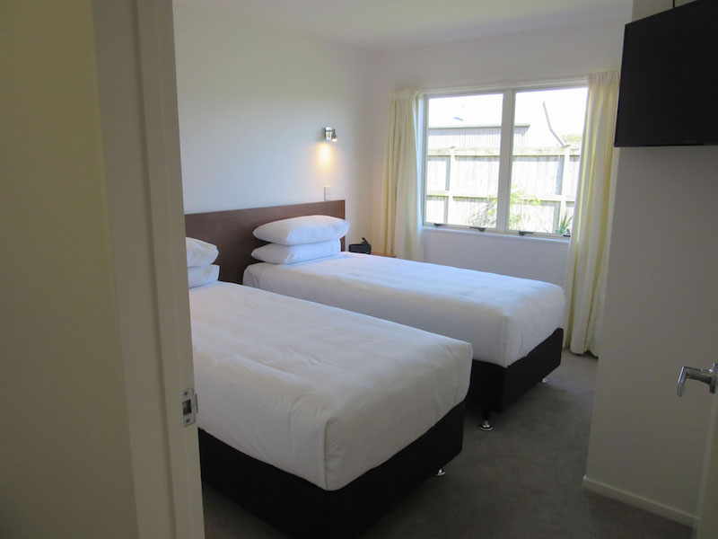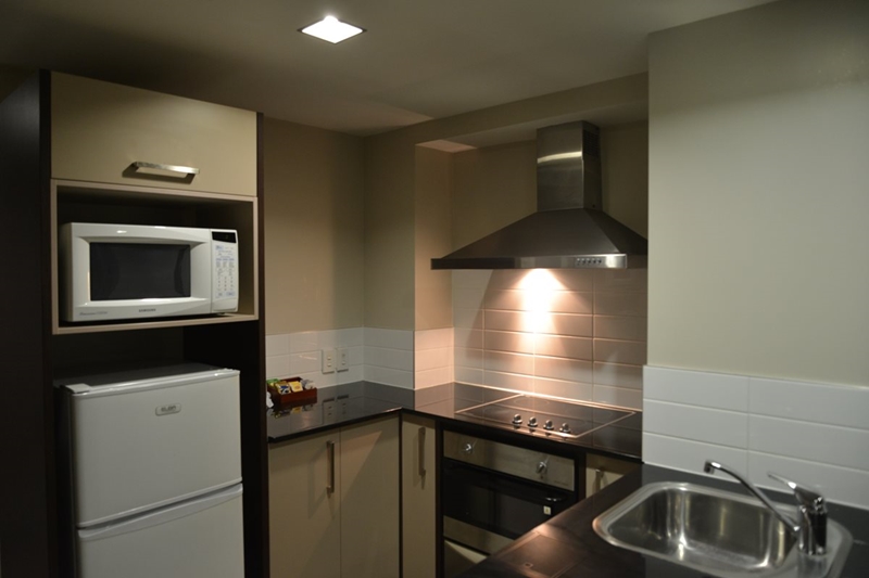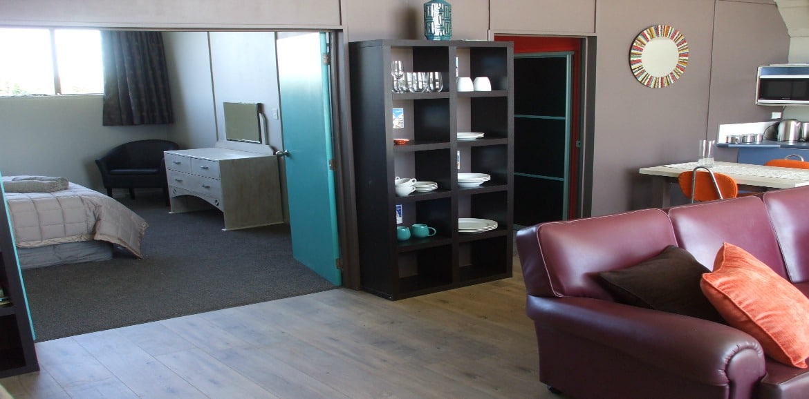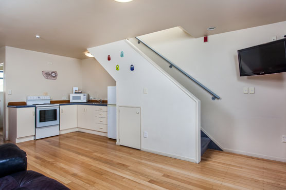 Das Studio (25 qm) verfügt über eine voll ausgestattete Küchenzeile mit einer Mikrowelle, einem Kühlschrank und einem Wasserkocher. Es umfasst auch einen Schreibtisch, einen geräumigen Kleiderschrank und einen Safe im Zimmer. Klimaanlage, ein großes Bad und ein Flachbild-TV mit neuseeländischen Sat-Kanälen stehen zur Verfügung.