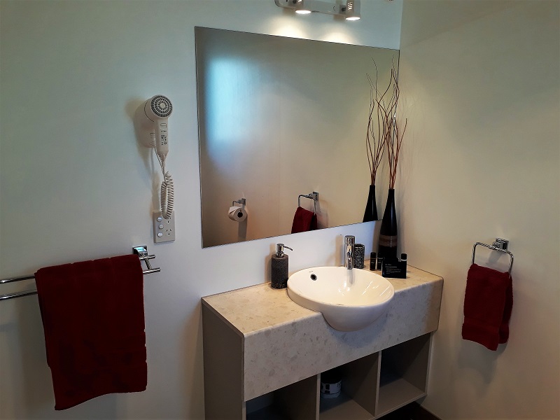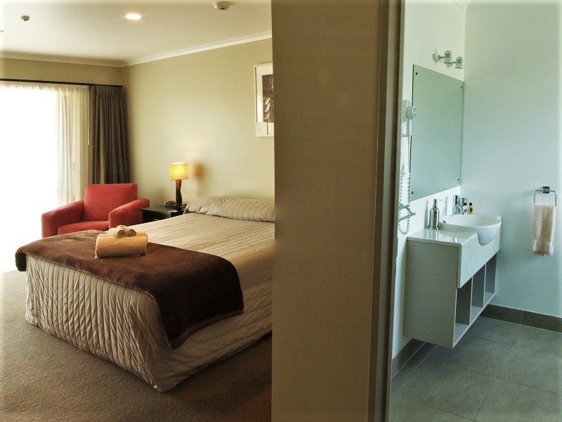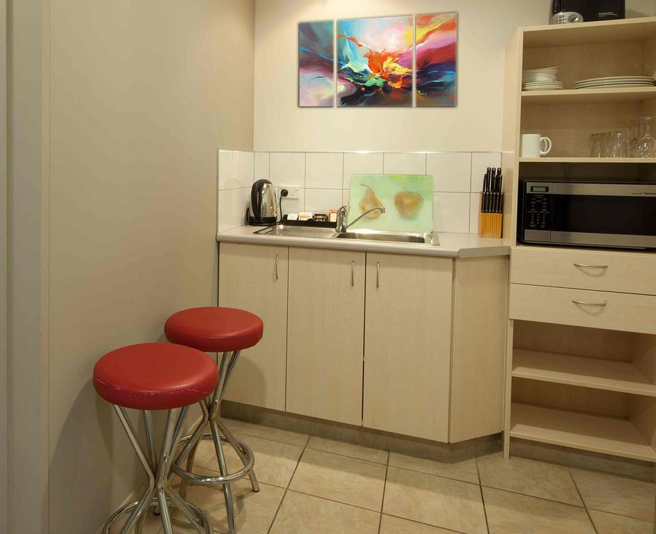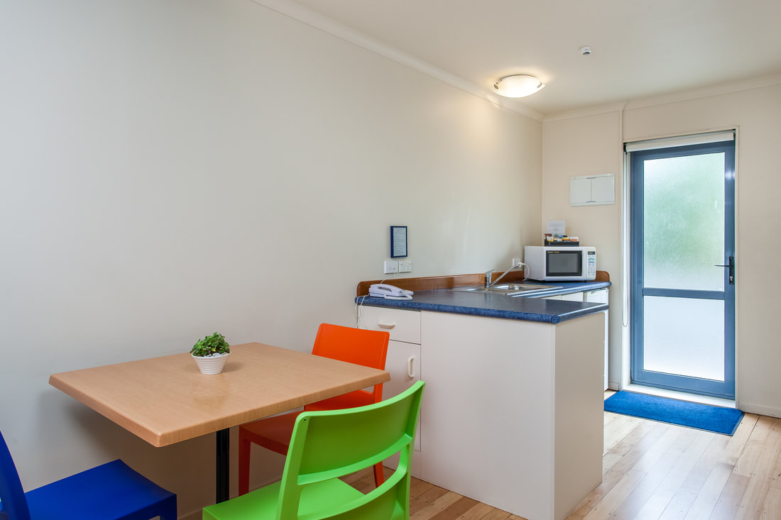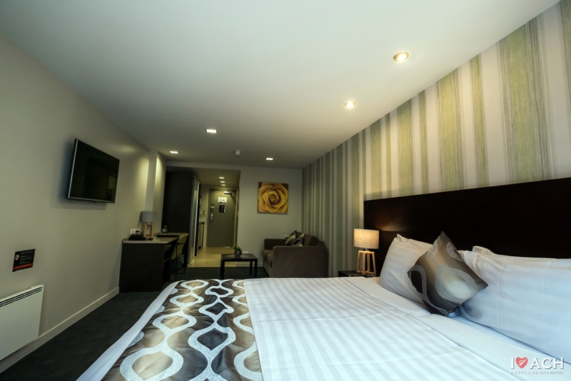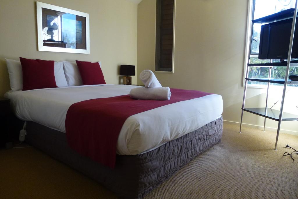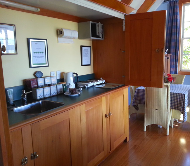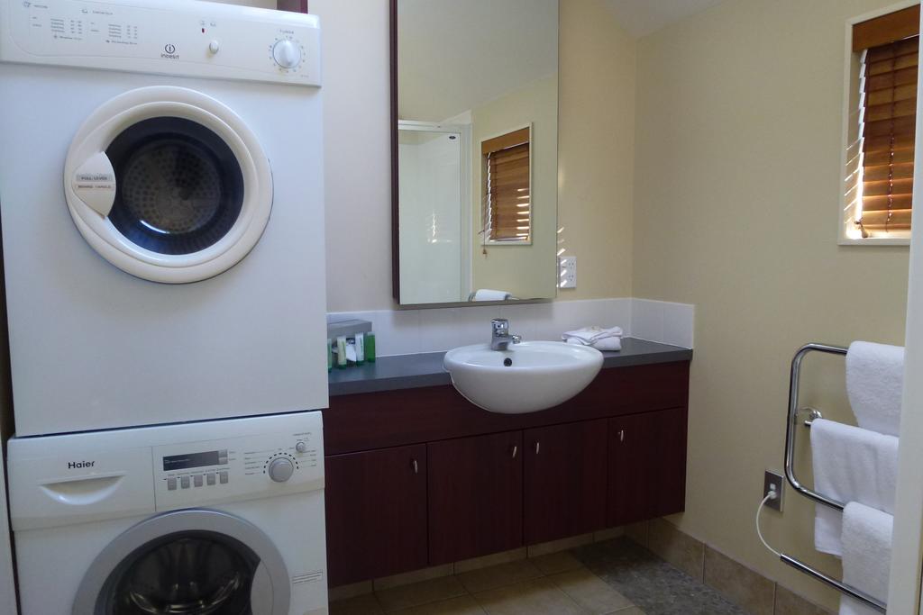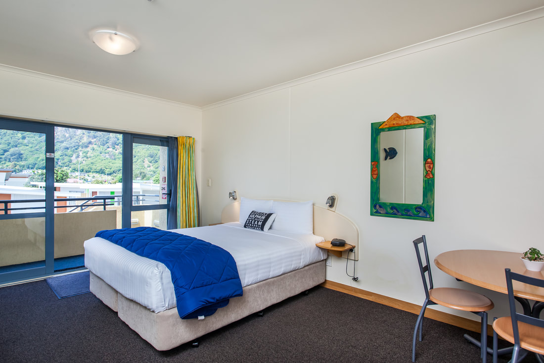 Das Studio (25 qm) verfügt über eine voll ausgestattete Küchenzeile mit einer Mikrowelle, einem Kühlschrank und einem Wasserkocher. Es umfasst auch einen Schreibtisch, einen geräumigen Kleiderschrank und einen Safe im Zimmer. Klimaanlage, ein großes Bad und ein Flachbild-TV mit neuseeländischen Sat-Kanälen stehen zur Verfügung.