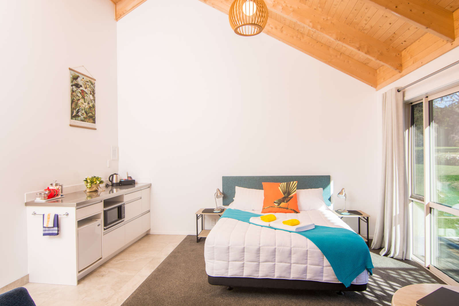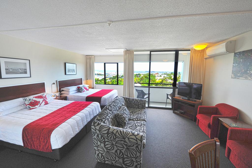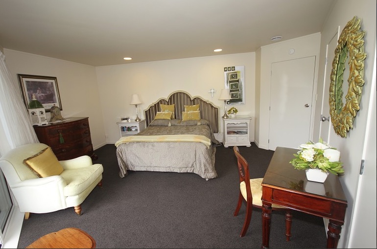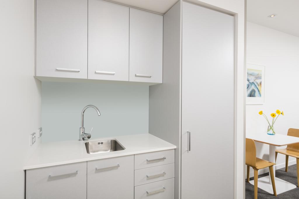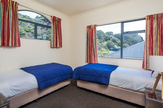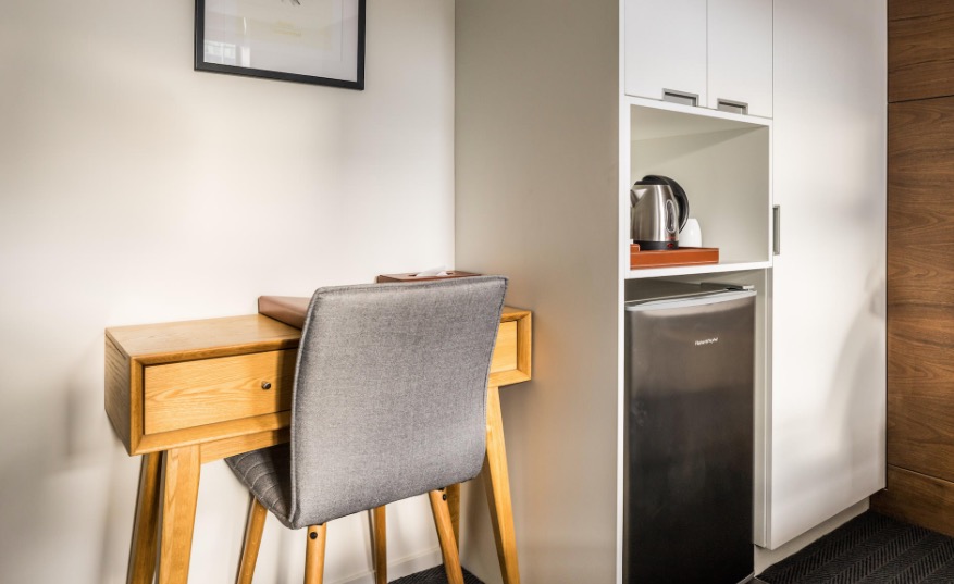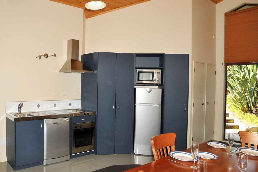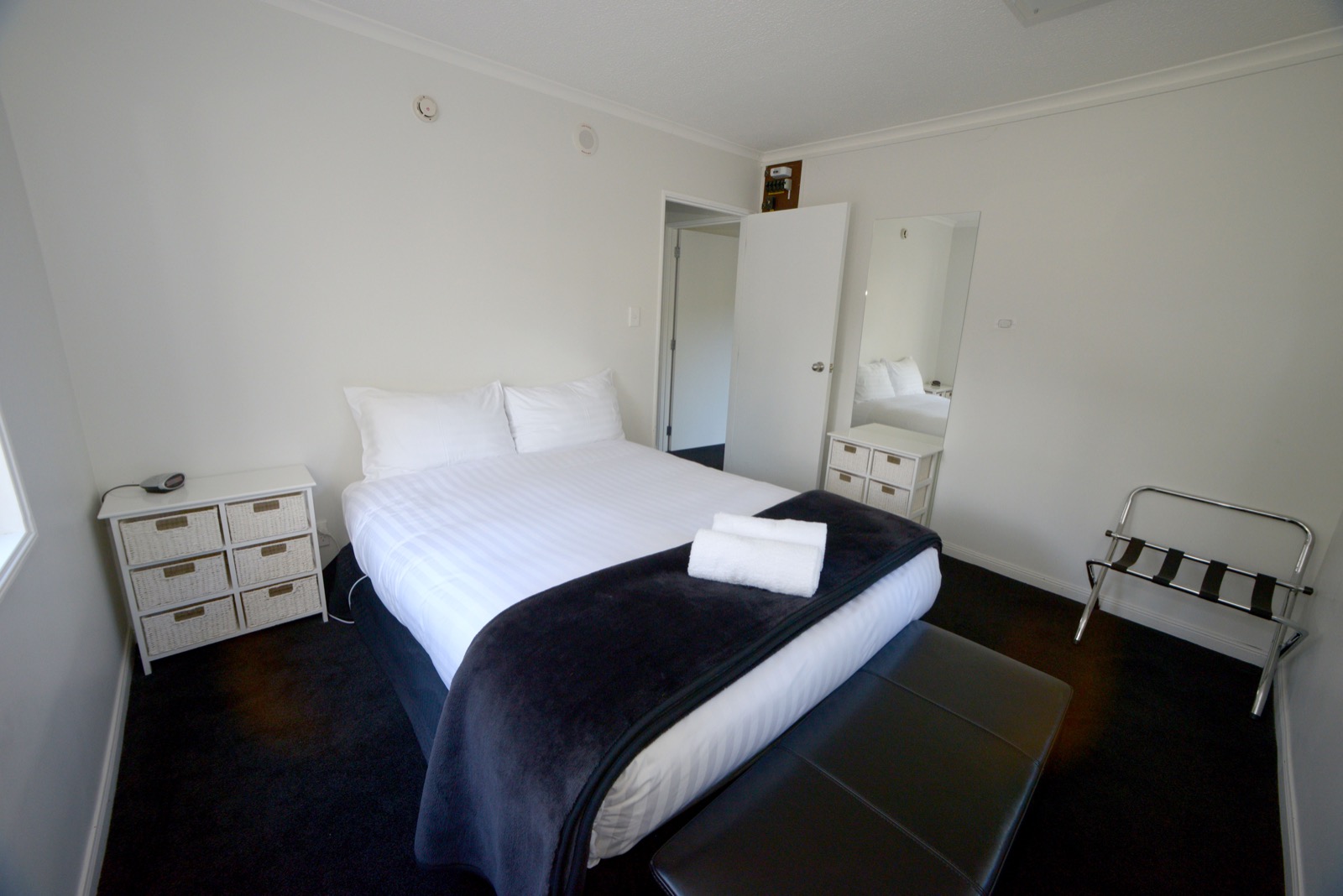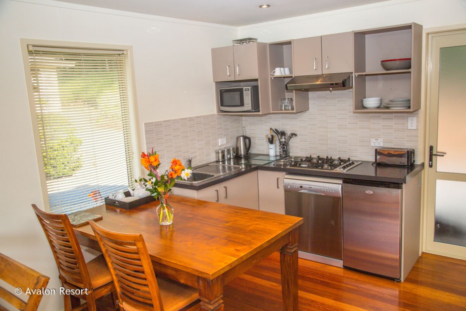 Das Studio (25 qm) verfügt über eine voll ausgestattete Küchenzeile mit einer Mikrowelle, einem Kühlschrank und einem Wasserkocher. Es umfasst auch einen Schreibtisch, einen geräumigen Kleiderschrank und einen Safe im Zimmer. Klimaanlage, ein großes Bad und ein Flachbild-TV mit neuseeländischen Sat-Kanälen stehen zur Verfügung.