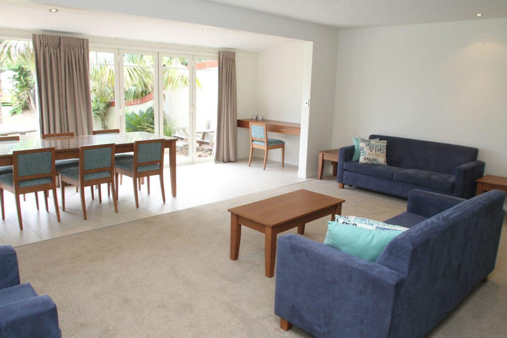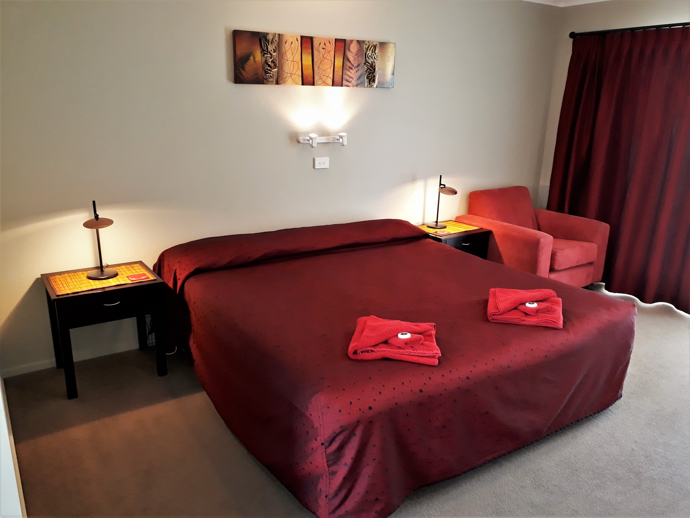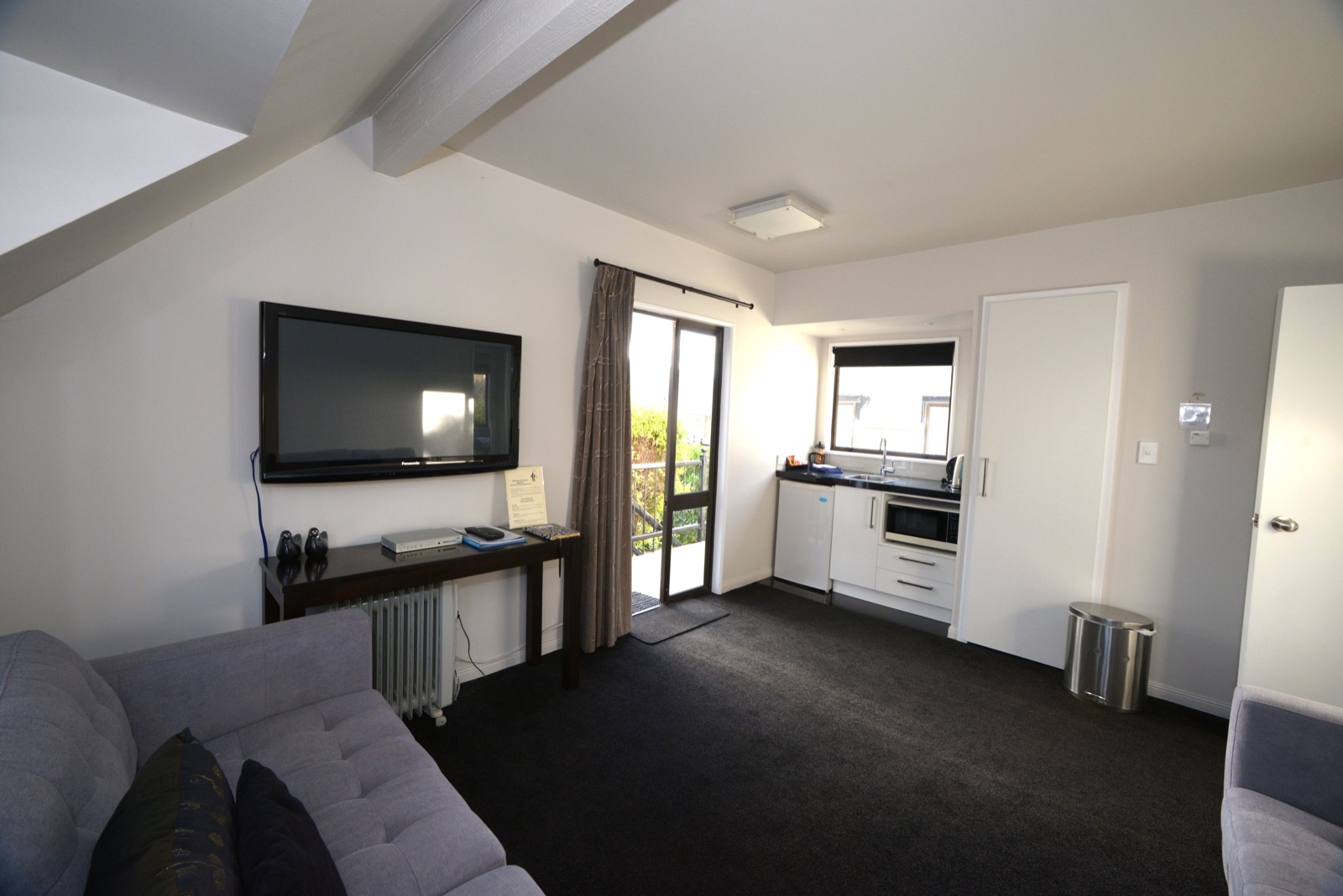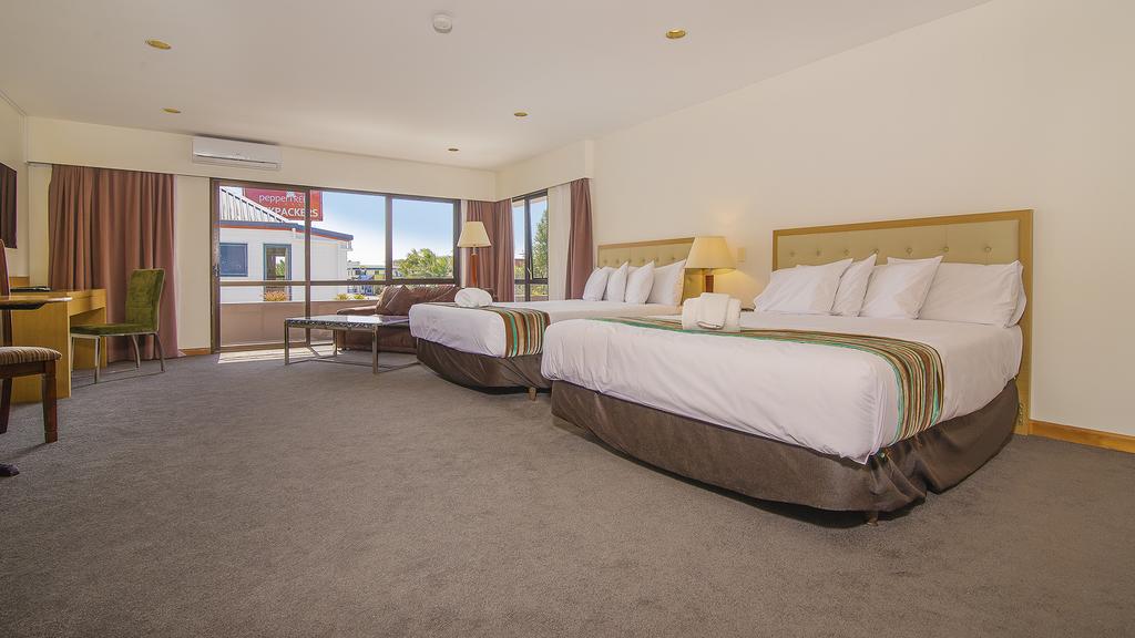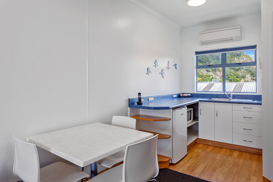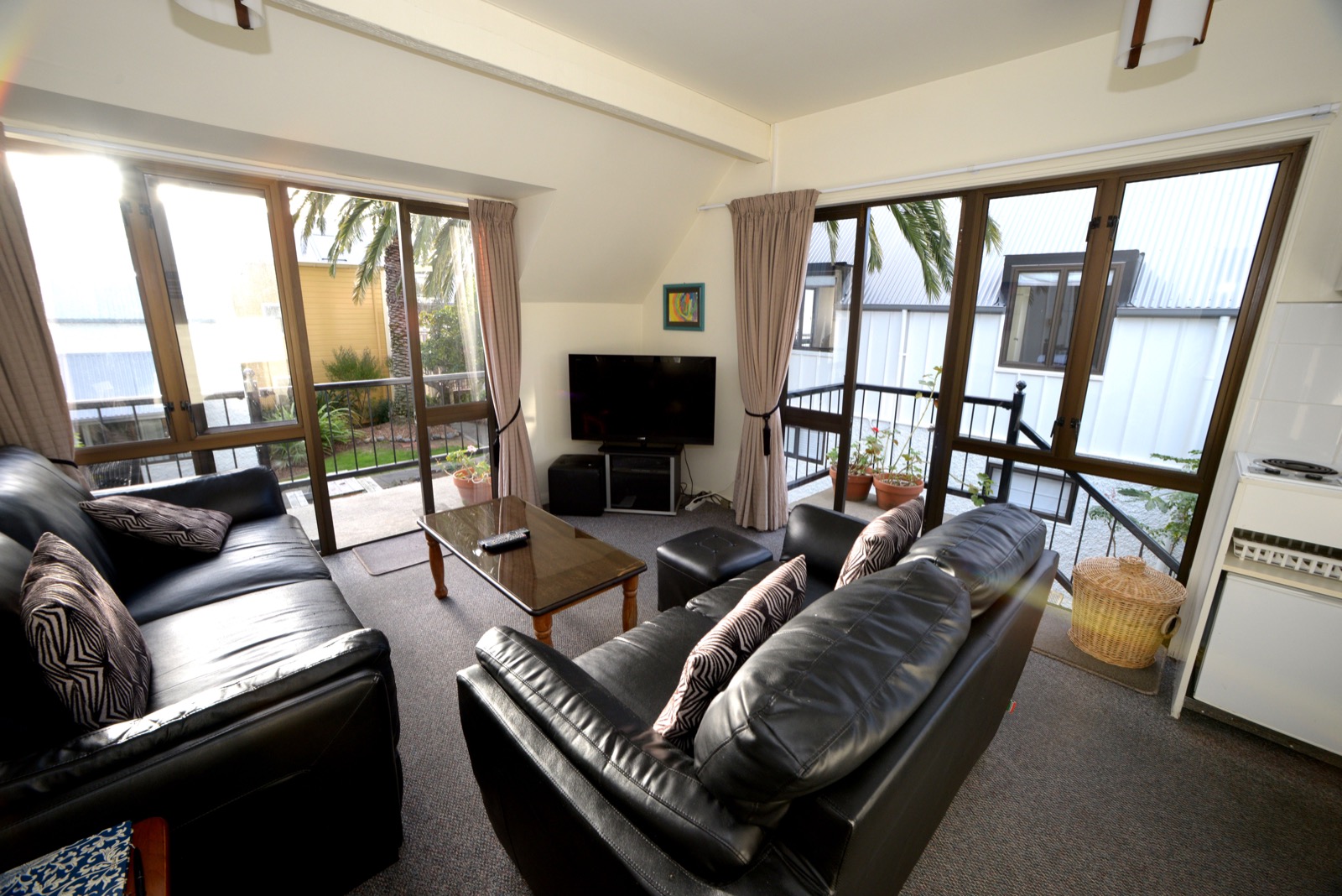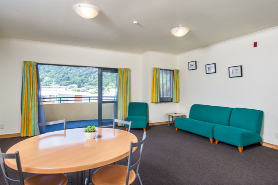 Das Studio (25 qm) verfügt über eine voll ausgestattete Küchenzeile mit einer Mikrowelle, einem Kühlschrank und einem Wasserkocher. Es umfasst auch einen Schreibtisch, einen geräumigen Kleiderschrank und einen Safe im Zimmer. Klimaanlage, ein großes Bad und ein Flachbild-TV mit neuseeländischen Sat-Kanälen stehen zur Verfügung.