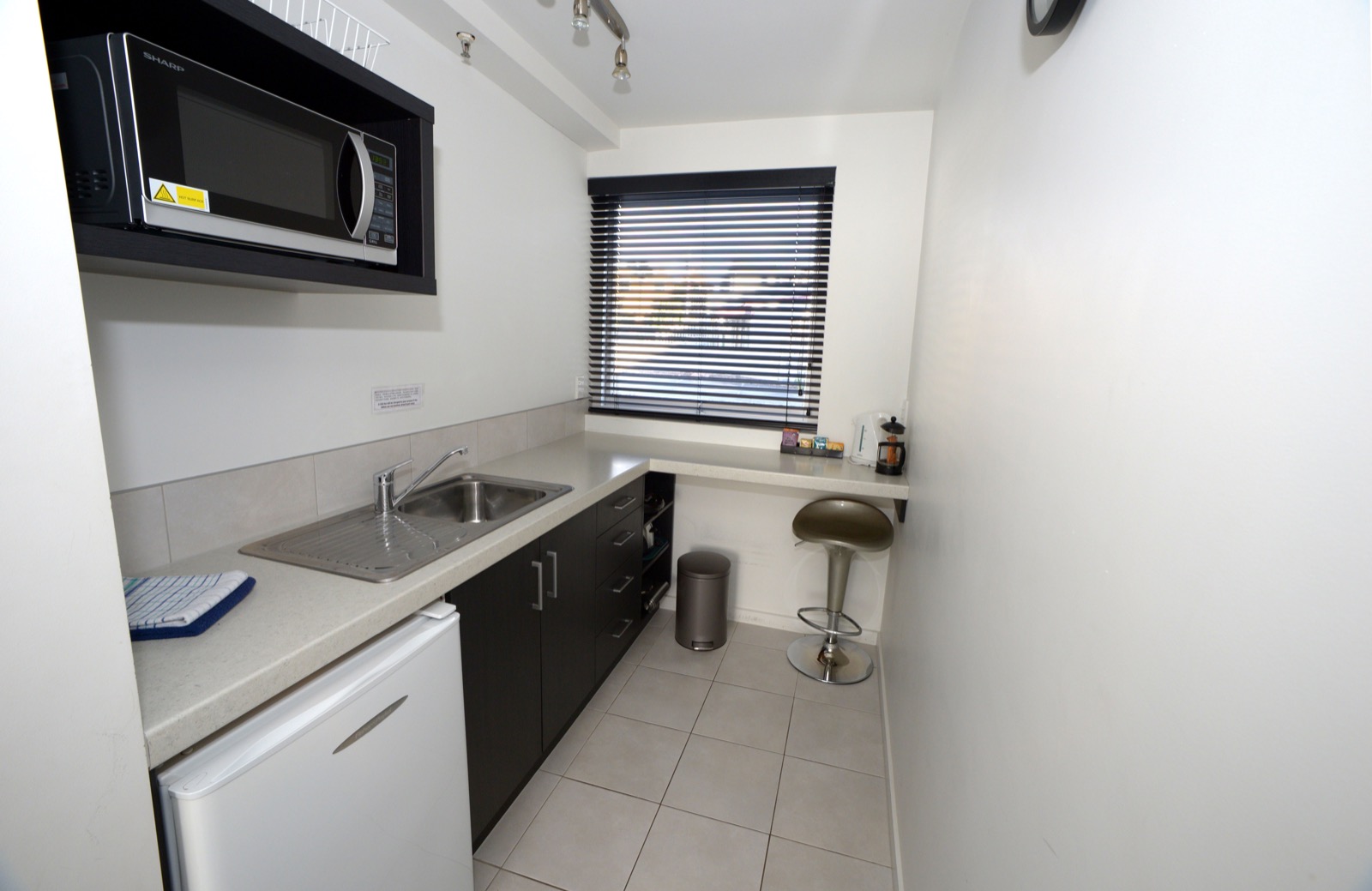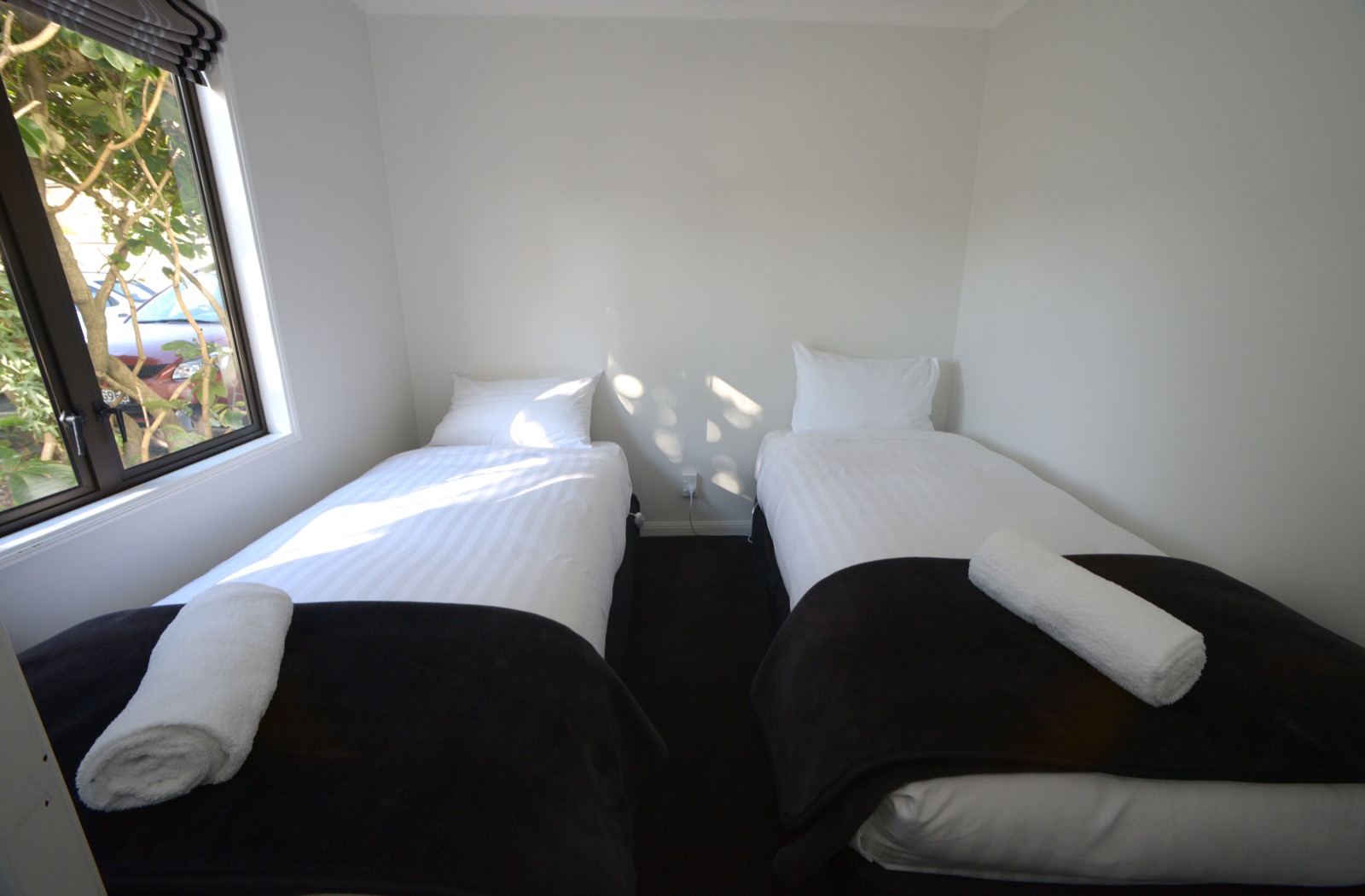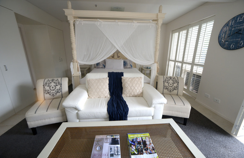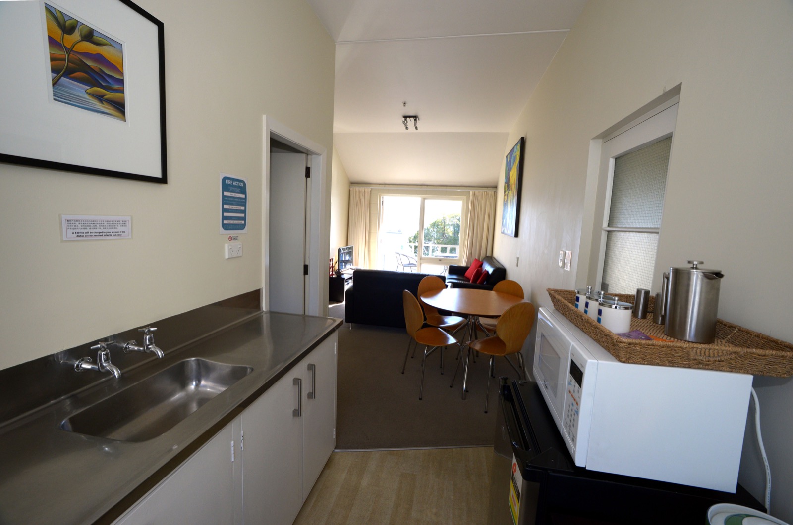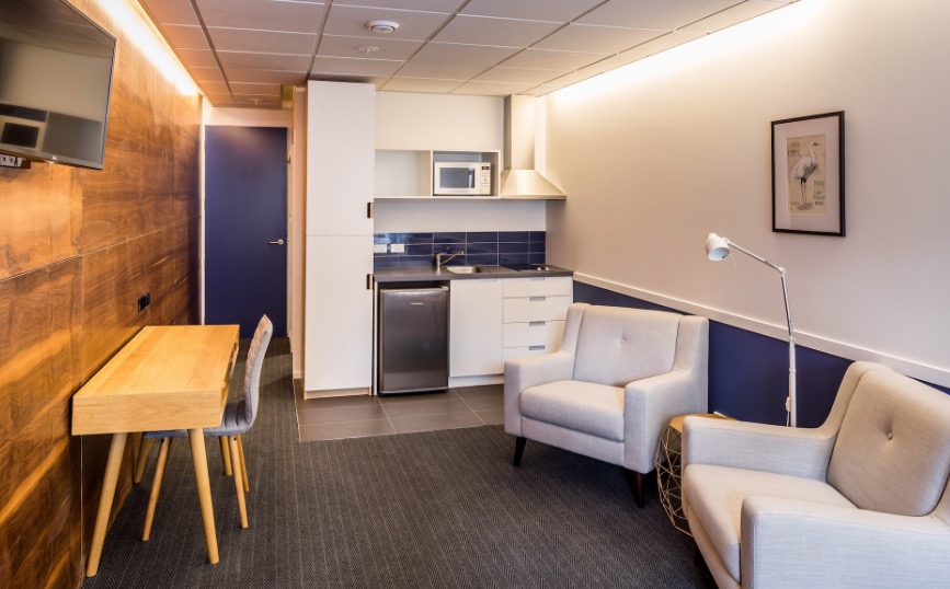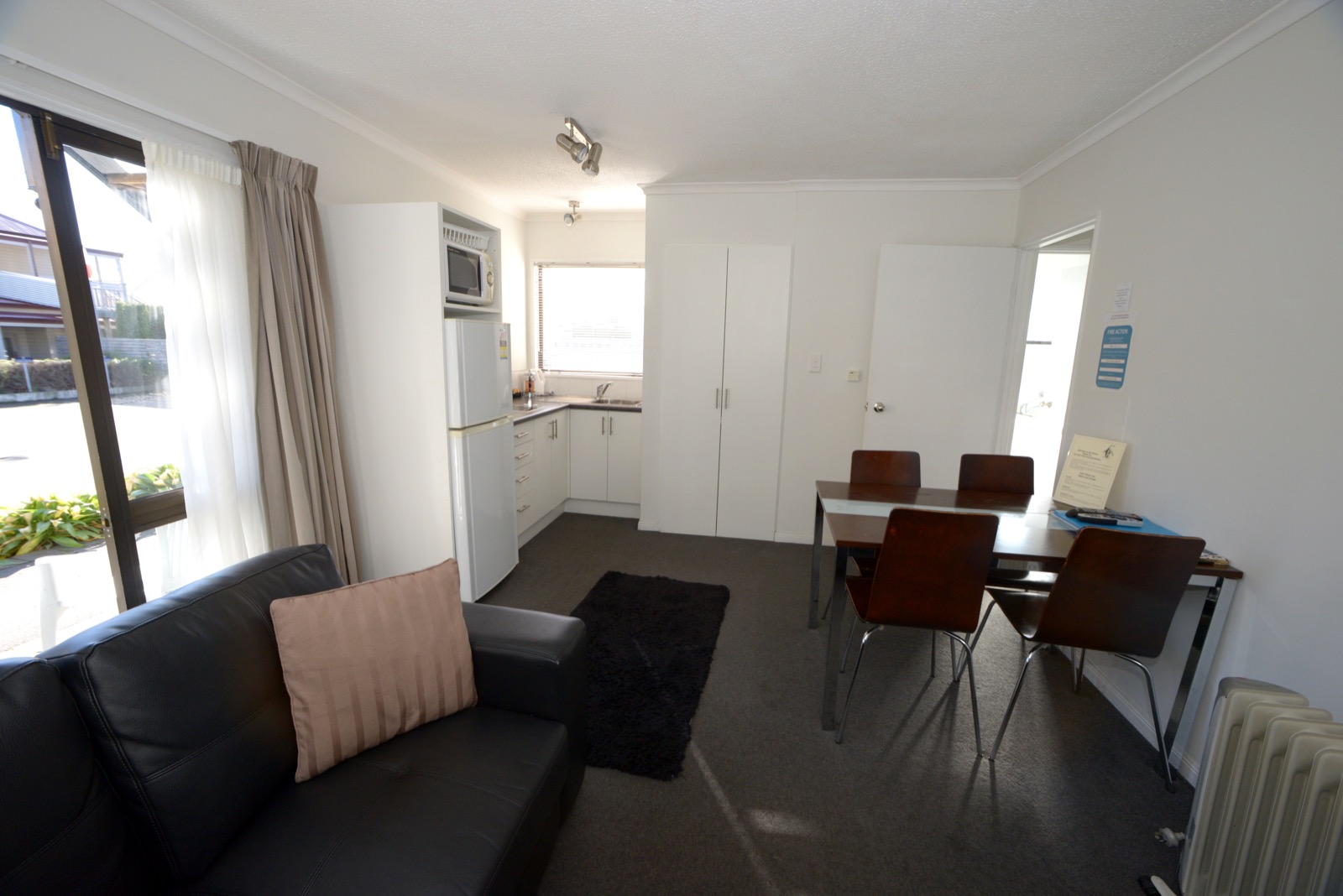 Das Studio (25 qm) verfügt über eine voll ausgestattete Küchenzeile mit einer Mikrowelle, einem Kühlschrank und einem Wasserkocher. Es umfasst auch einen Schreibtisch, einen geräumigen Kleiderschrank und einen Safe im Zimmer. Klimaanlage, ein großes Bad und ein Flachbild-TV mit neuseeländischen Sat-Kanälen stehen zur Verfügung.