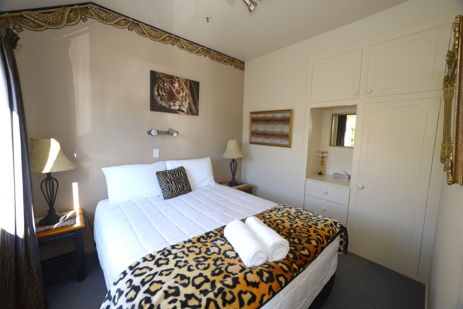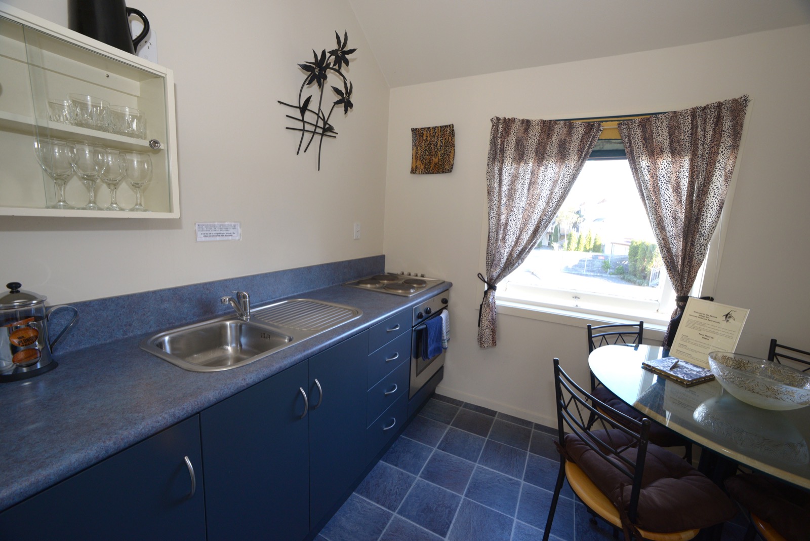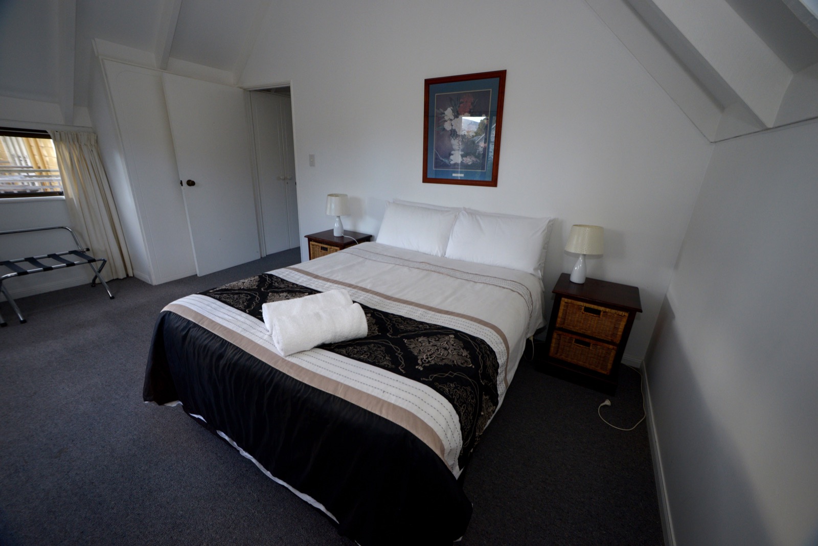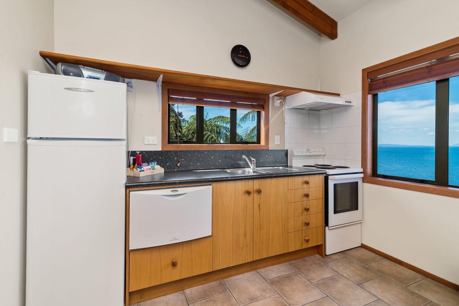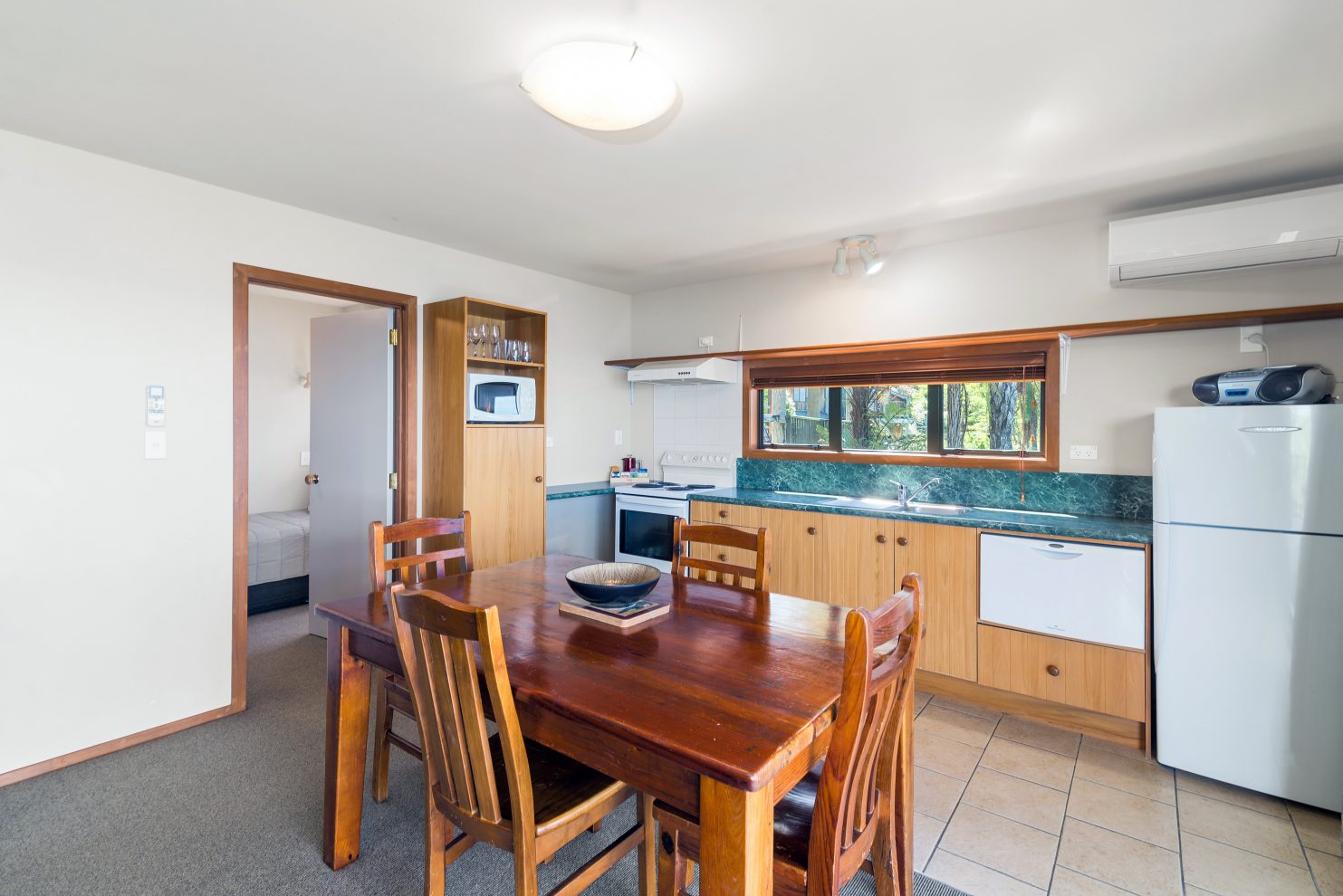 Das Studio (25 qm) verfügt über eine voll ausgestattete Küchenzeile mit einer Mikrowelle, einem Kühlschrank und einem Wasserkocher. Es umfasst auch einen Schreibtisch, einen geräumigen Kleiderschrank und einen Safe im Zimmer. Klimaanlage, ein großes Bad und ein Flachbild-TV mit neuseeländischen Sat-Kanälen stehen zur Verfügung.