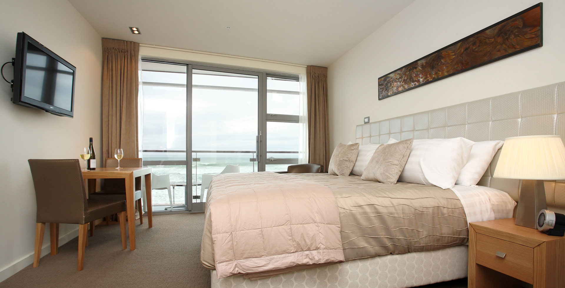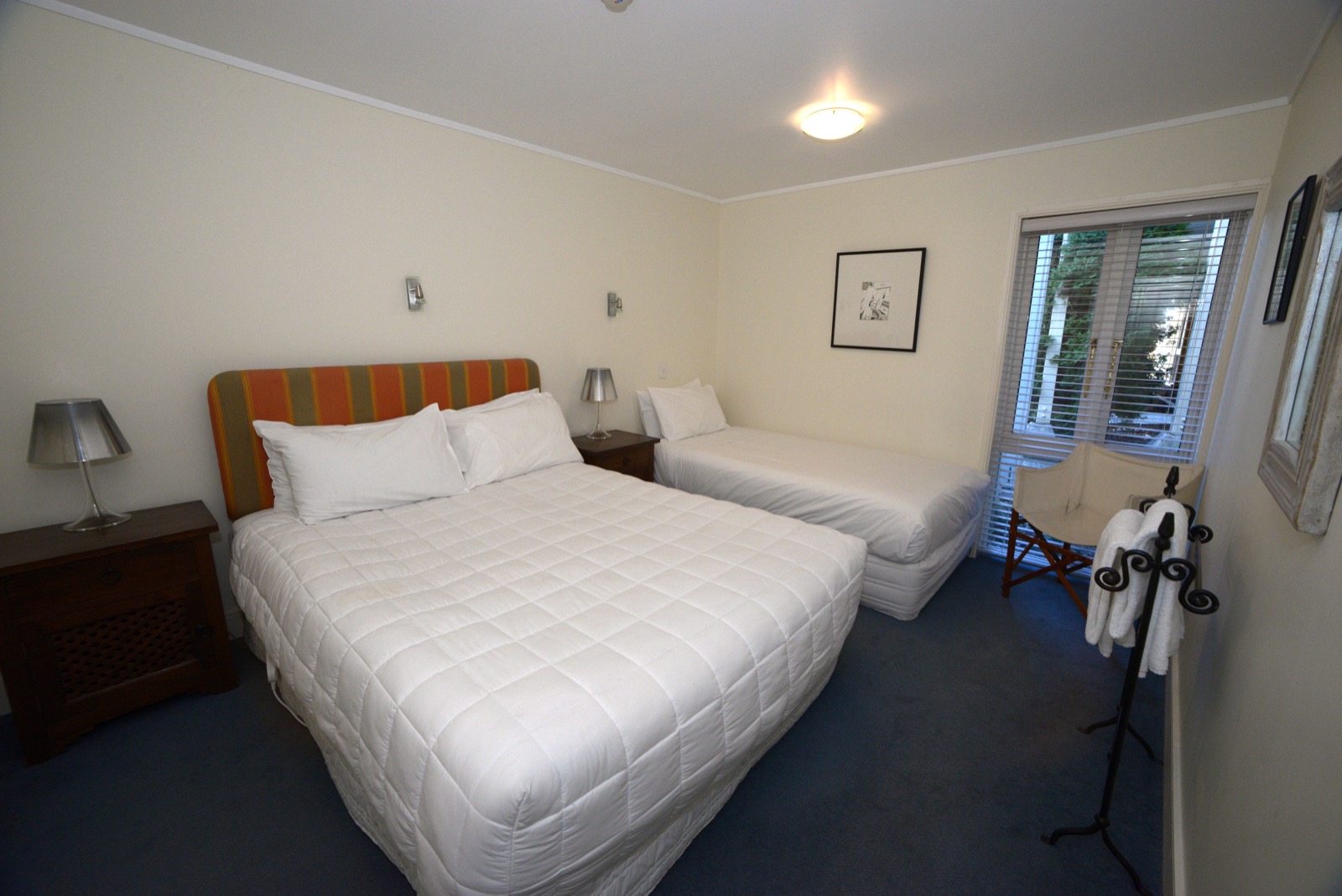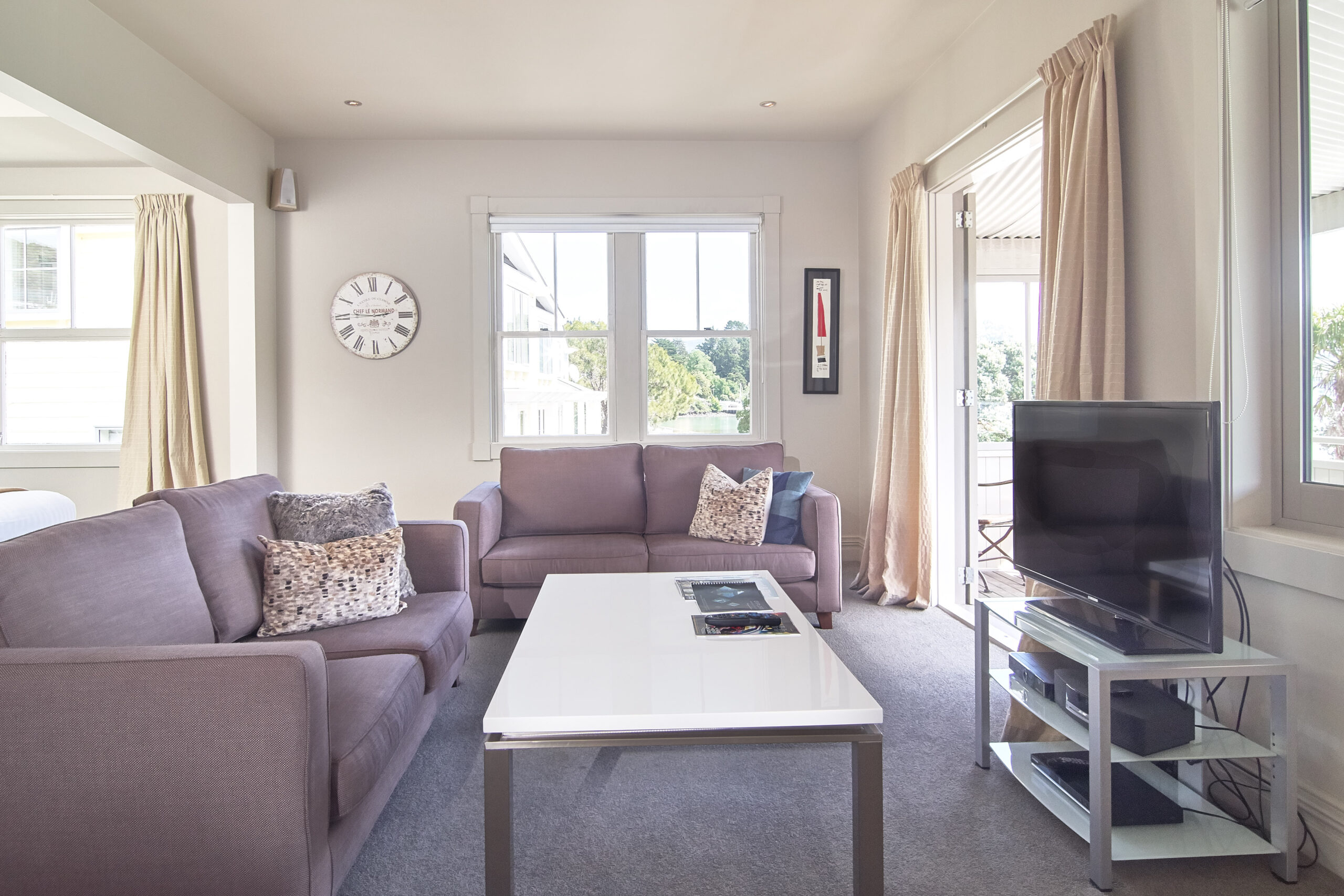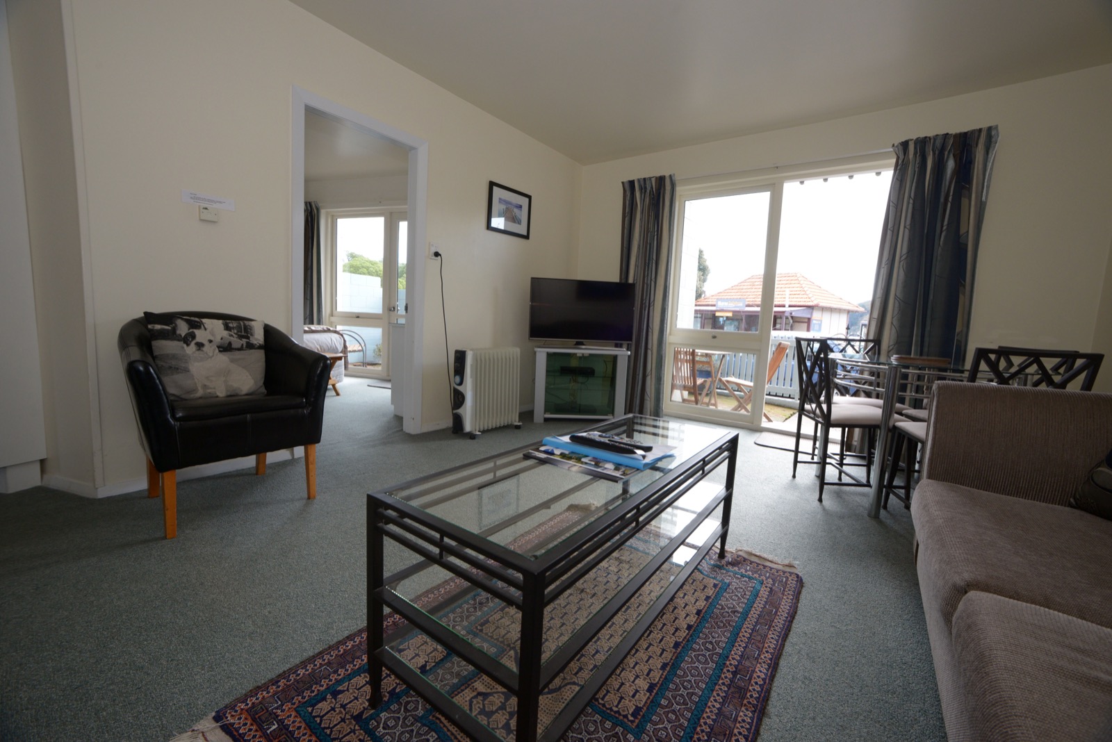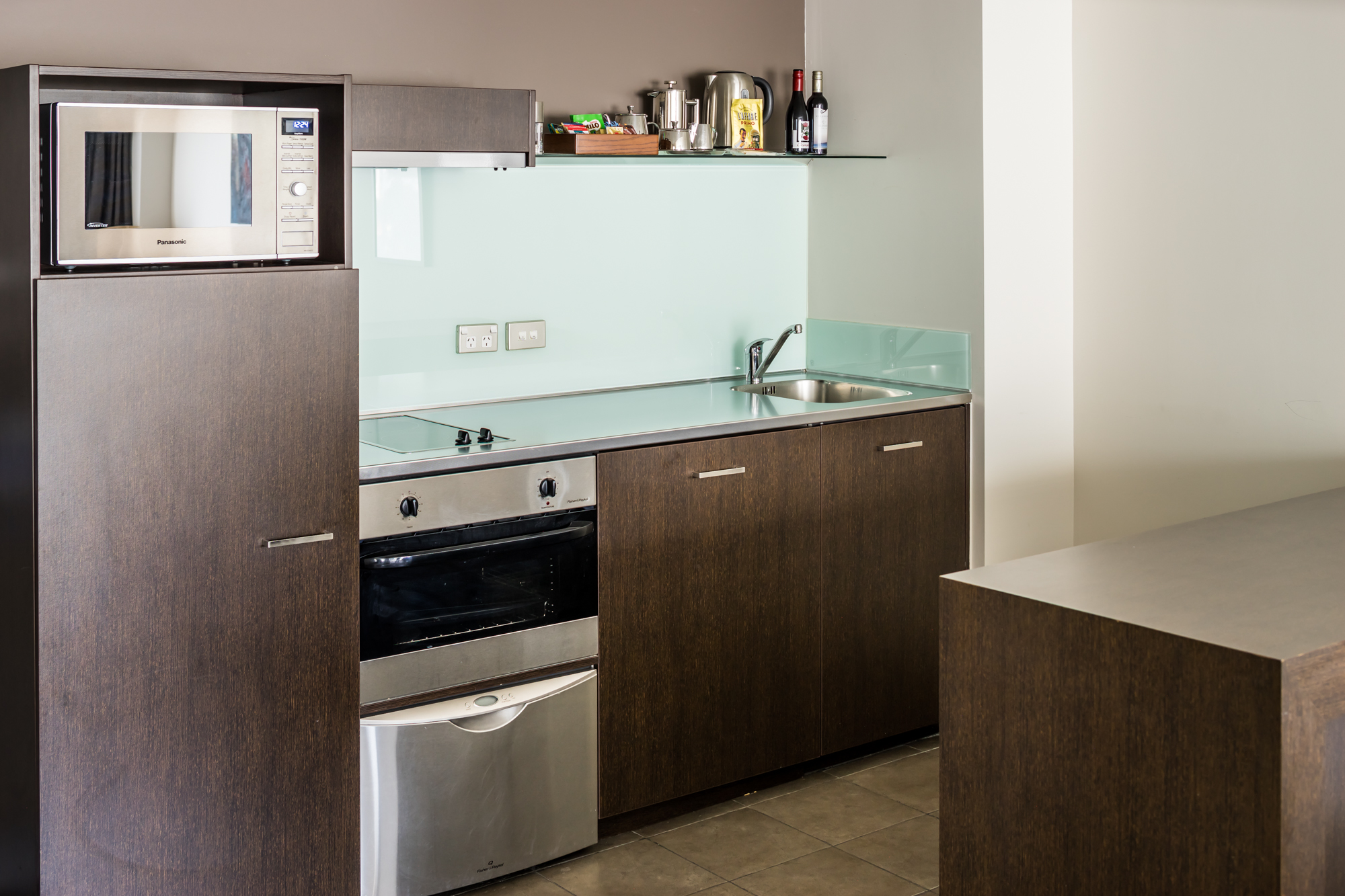 Das Studio (25 qm) verfügt über eine voll ausgestattete Küchenzeile mit einer Mikrowelle, einem Kühlschrank und einem Wasserkocher. Es umfasst auch einen Schreibtisch, einen geräumigen Kleiderschrank und einen Safe im Zimmer. Klimaanlage, ein großes Bad und ein Flachbild-TV mit neuseeländischen Sat-Kanälen stehen zur Verfügung.