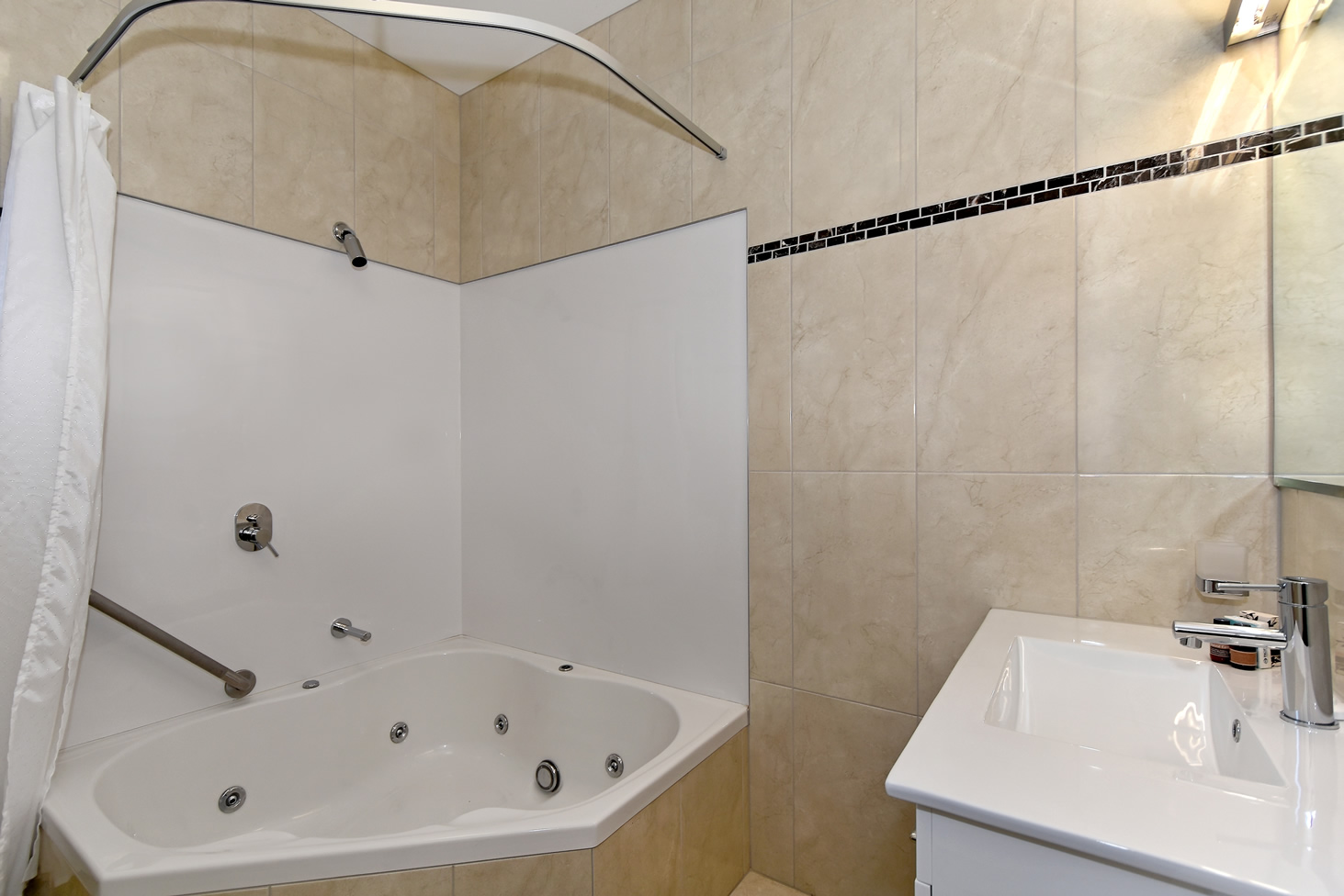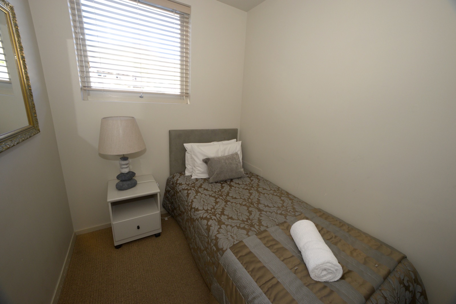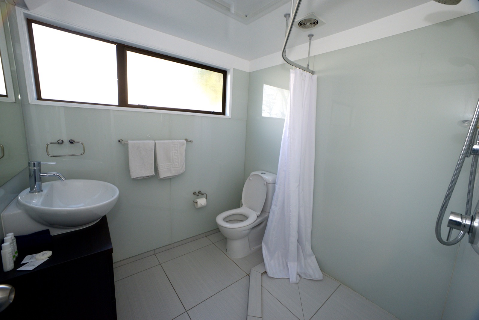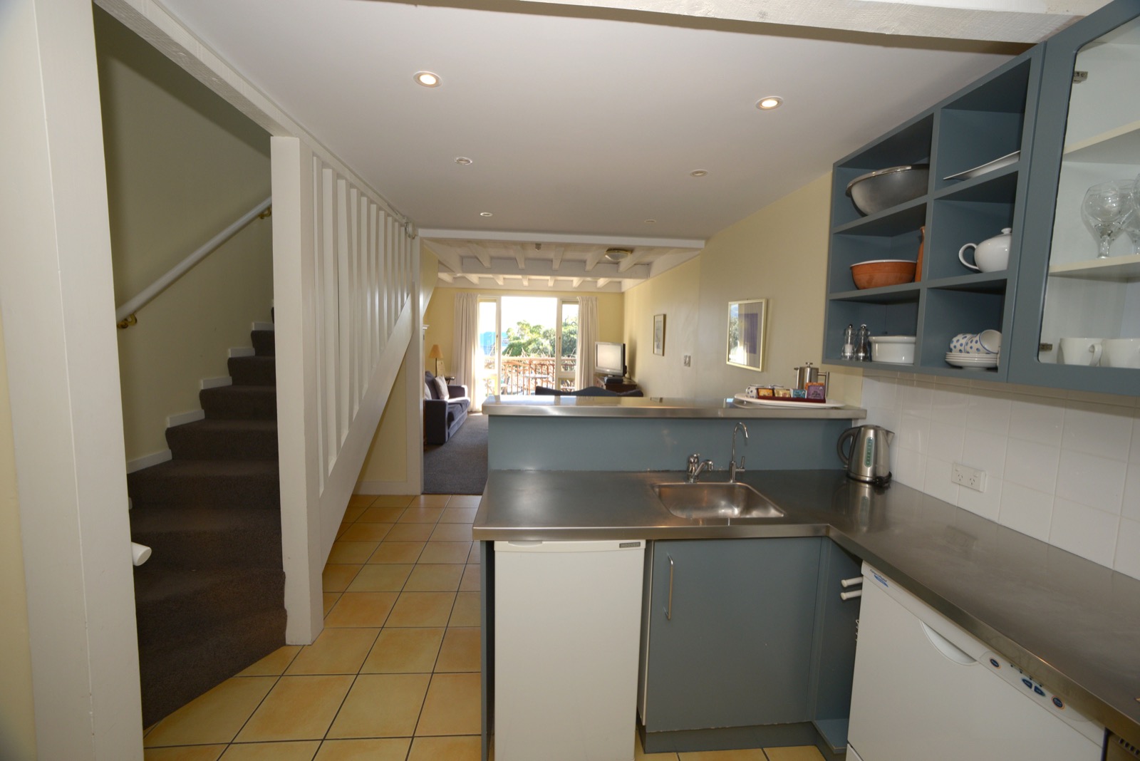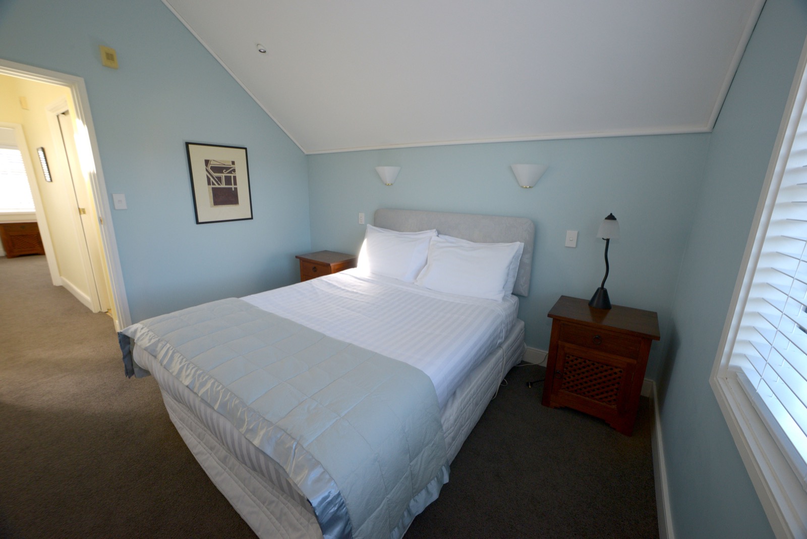 Das Studio (25 qm) verfügt über eine voll ausgestattete Küchenzeile mit einer Mikrowelle, einem Kühlschrank und einem Wasserkocher. Es umfasst auch einen Schreibtisch, einen geräumigen Kleiderschrank und einen Safe im Zimmer. Klimaanlage, ein großes Bad und ein Flachbild-TV mit neuseeländischen Sat-Kanälen stehen zur Verfügung.