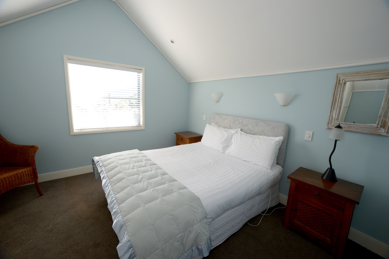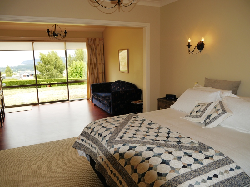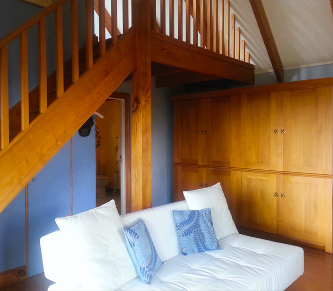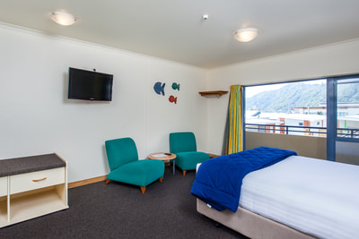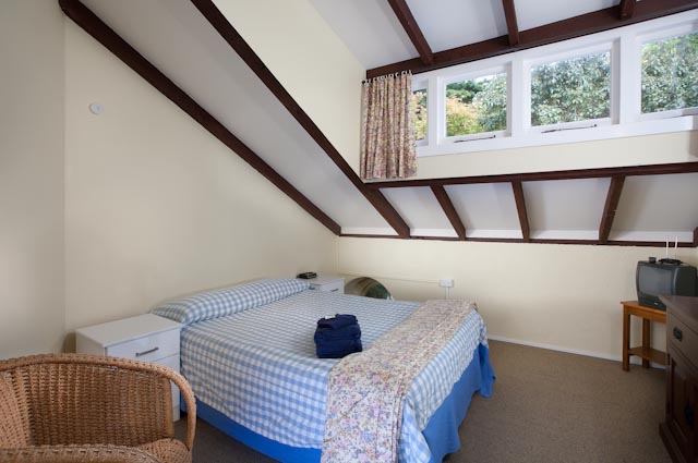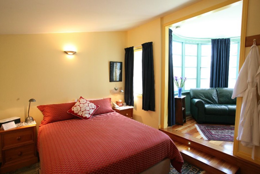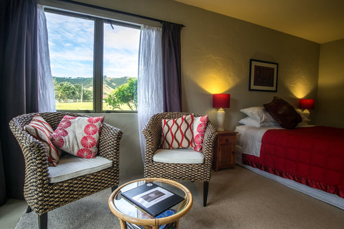 Das Zimmer liegt in der oberen Etage mit Blick aufs Meer und den Pancake Rock. Es verfügt über ein Queensize-Bett, ein eigenes Bad und einen eigenen Wintergarten.