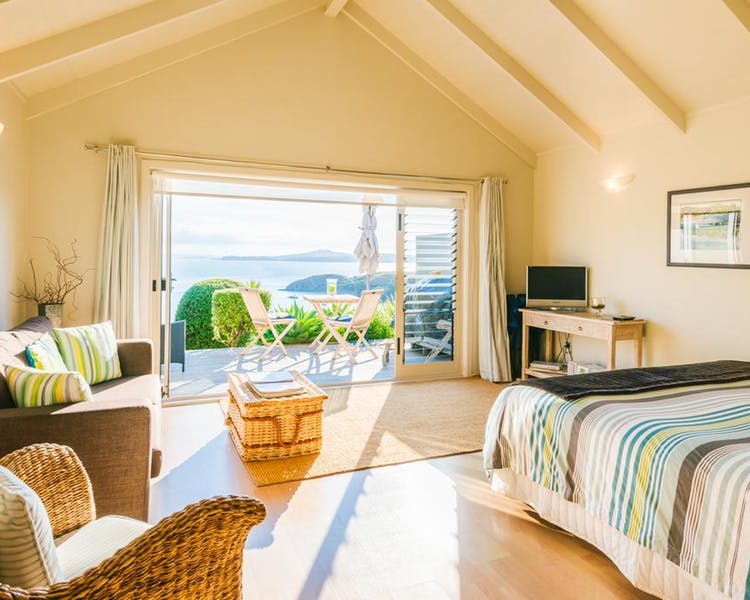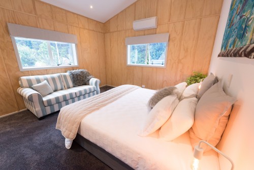 Die Seaview Cottages sind alle freistehend und liegen wunderschön inmitten der neuseeländischen Natur. Sie sind ideal für einen romantischen Rückzug in die Natur. Jedes Cottage verfügt über ein Kingsize- oder ein Queensize-Bett, eine gut ausgestattete Küchenzeile und besitzt die Möglichkeit für ein romantisches Kaminfeuer.