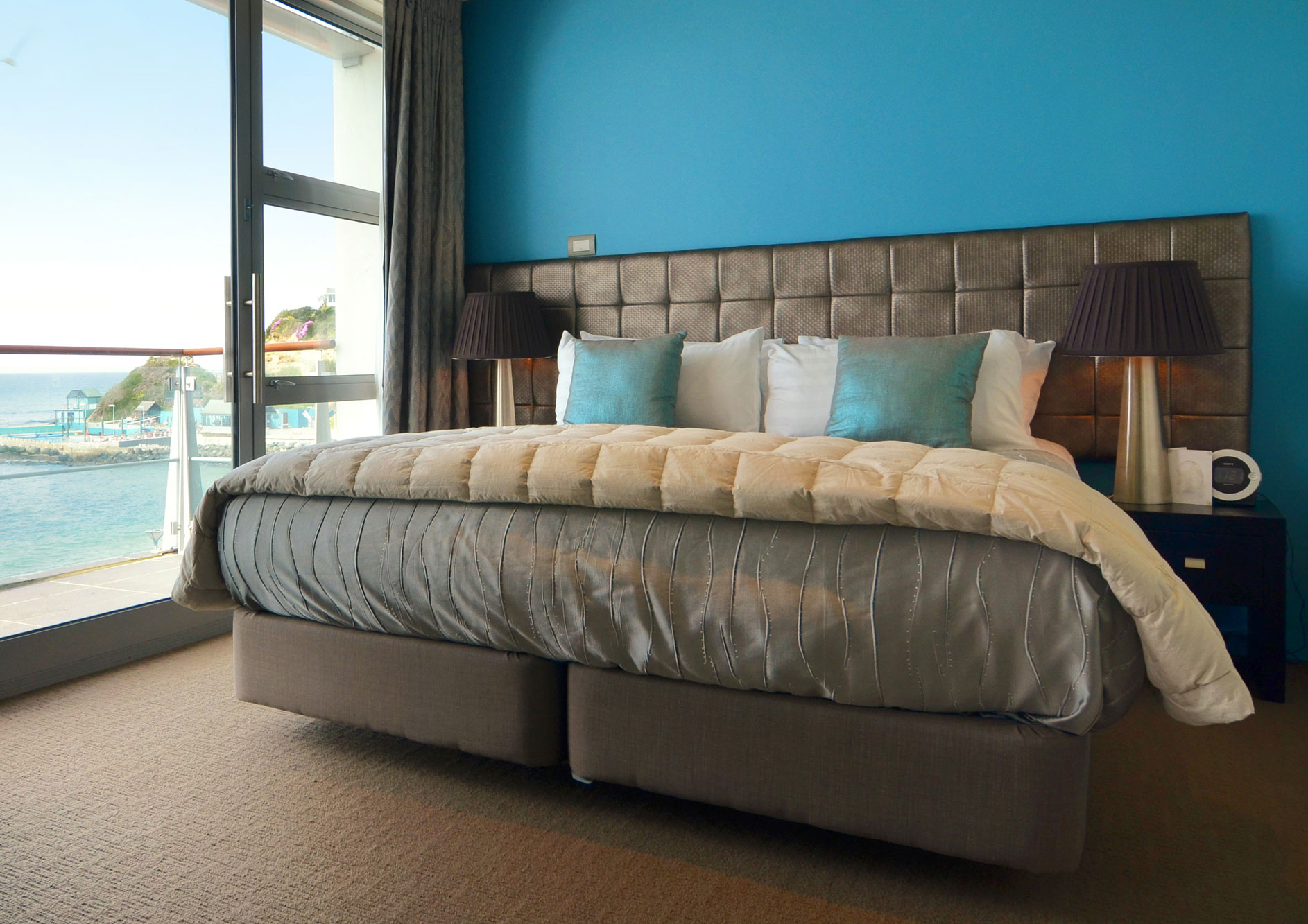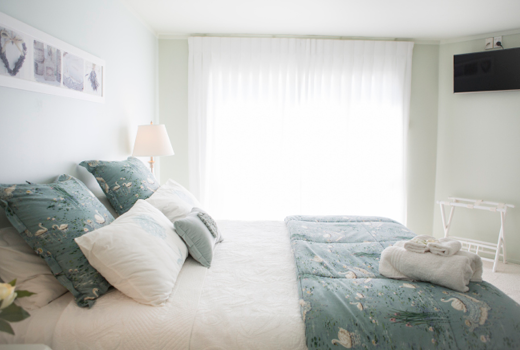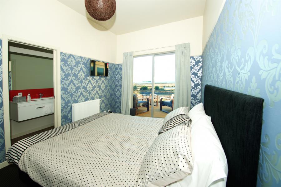 Jedes Zimmer verfügt über ein luxuriöses kalifornisches Kingsize-Bett, Kochnische mit Mikrowelle, Kühlschrank, Toaster und Wasserkocher. Das geräumige Badezimmer hat eine große begehbare Dusche. Dank der Klimaanlage kann das ganze Jahr über eine perfekte Warmwasser-Temperatur aufrechterhalten werden. Es gibt eine große halbüberdachte Terrasse und einen eigenen Parkplatz, der direkt nebenan liegt.