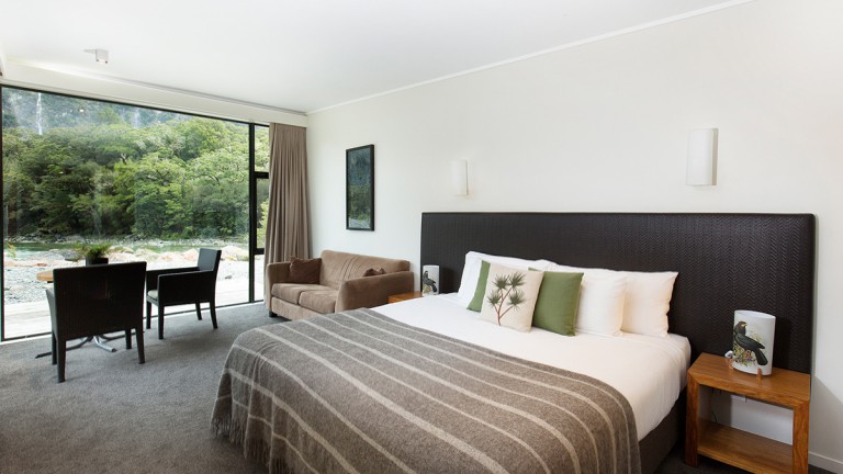 Das Wanaka Haven ist eine sehr luxuriöse Lodge. Zwischen Ihnen und den Südalpen ist nur unberührte Natur. Vom Garten aus haben Sie einen herrlichen Ausblick auf die Berge. Aber trotz der Abgeschiedenheit haben Sie hier allen Komfort: Vornehme King-Size-Betten, Fußbodenheizung, TV, DVD-Player, Wifi und Bad mit Föhn, Handtuchwärmer, Bademantel und Kosmetik. Im Restaurant erwartet Sie nicht nur Gourmetgenuss, sondern auch eine gemütliche Feuerstelle.