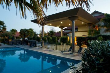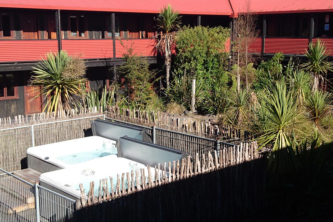 Die Außenwhirlpools, die Hängematten im Innenhof und die offenen Kamine sind kostenlos und bieten die perfekte Gelegenheit, nach einem erlebnisreichen Tag in der Region Ruapehu zu entspannen.