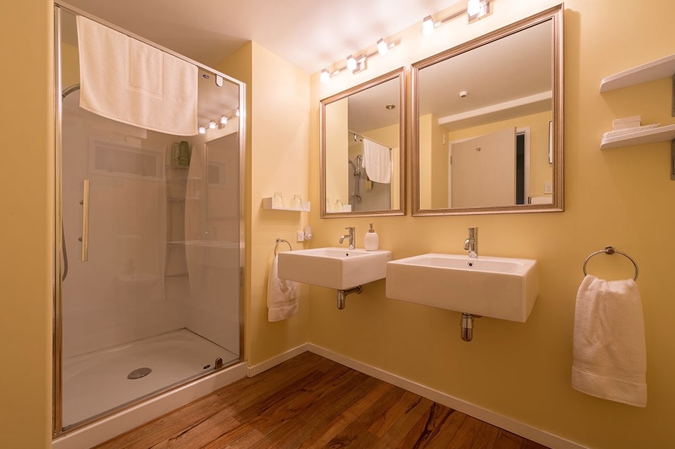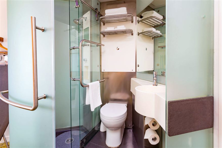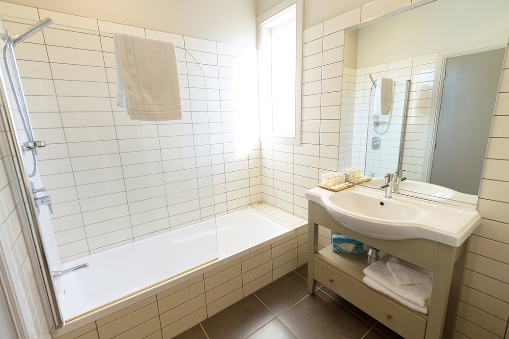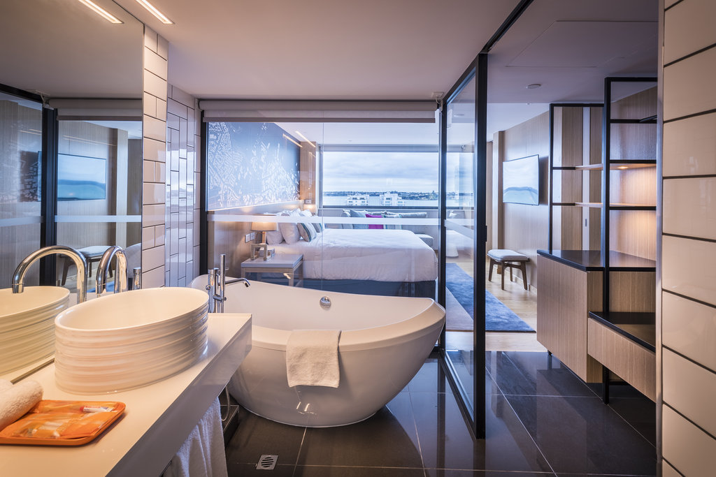Die Badezimmer sind alle mit Doppel-Whirlpools ausgestattet, damit Sie sich auch nach Ihren Naturerlebnissen perfekt entspannen können. Auf dem privaten Balkon genießen Sie einen fantastischen Blick auf den Hafen.