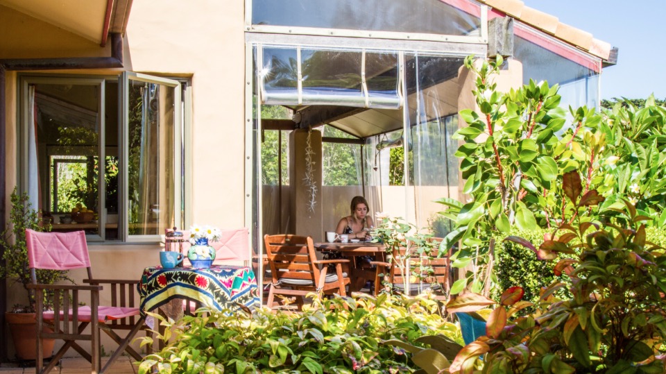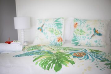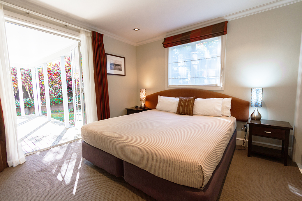 Dein Zimmer ist gemütlich eingerichtet und hat ein großes King- oder Queen-Size-Bett, ein Bad und einen Zugang zur Veranda und zum Garten. Außerdem stehen dir ein Föhn und Bademäntel zur Verfügung.