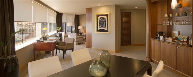 Das Apartment (140 qm) verfügt über eine Küche mit Mikrowelle, Kühlschrank, Küchenutensilien und Wasserkocher. Es bietet ein Wohnzimmer, ein Esszimmer, 2 Badezimmer, einen Safe im Zimmer und einen geräumigen Kleiderschrank. Eine Minibar, Tee- und Kaffeezubehör, eine Klimaanlage sowie Wäschemöglichkeiten und ein Bügeleisen/-brett sind ebenfalls vorhanden. Das geräumige Bad neben dem Wohnbereich ist mit einer Badewanne, einer Dusche und einem Haartrockner ausgestattet.