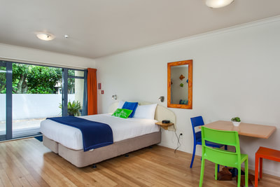Die einfachste Zimmerart mit einem sehr guten Preis-Leistungs-Verhältnis. Diese Zimmerkategorie kann ein wenig lauter sein als die anderen Zimmer und wurde deshalb als Budget klassifiziert. Dafür wurden die Räume mit einem Schuss Farbe erfrischend gestaltet. Die Studios verfügen über ein Kingsize-Bett und ein Einzelbett. Es gibt eine Küchenzeile und ein Ensuite-Badezimmer. Zwei dieser Zimmer sind barrierefrei und verfügen über ein Nassbadezimmer.