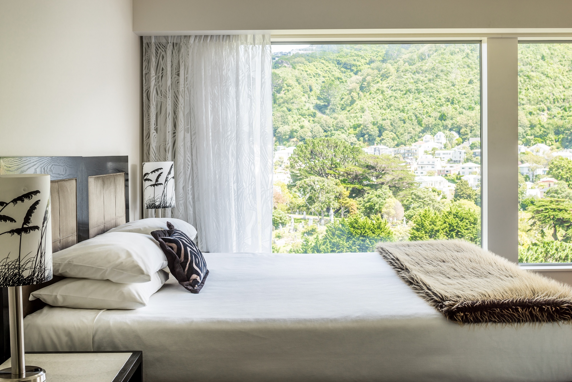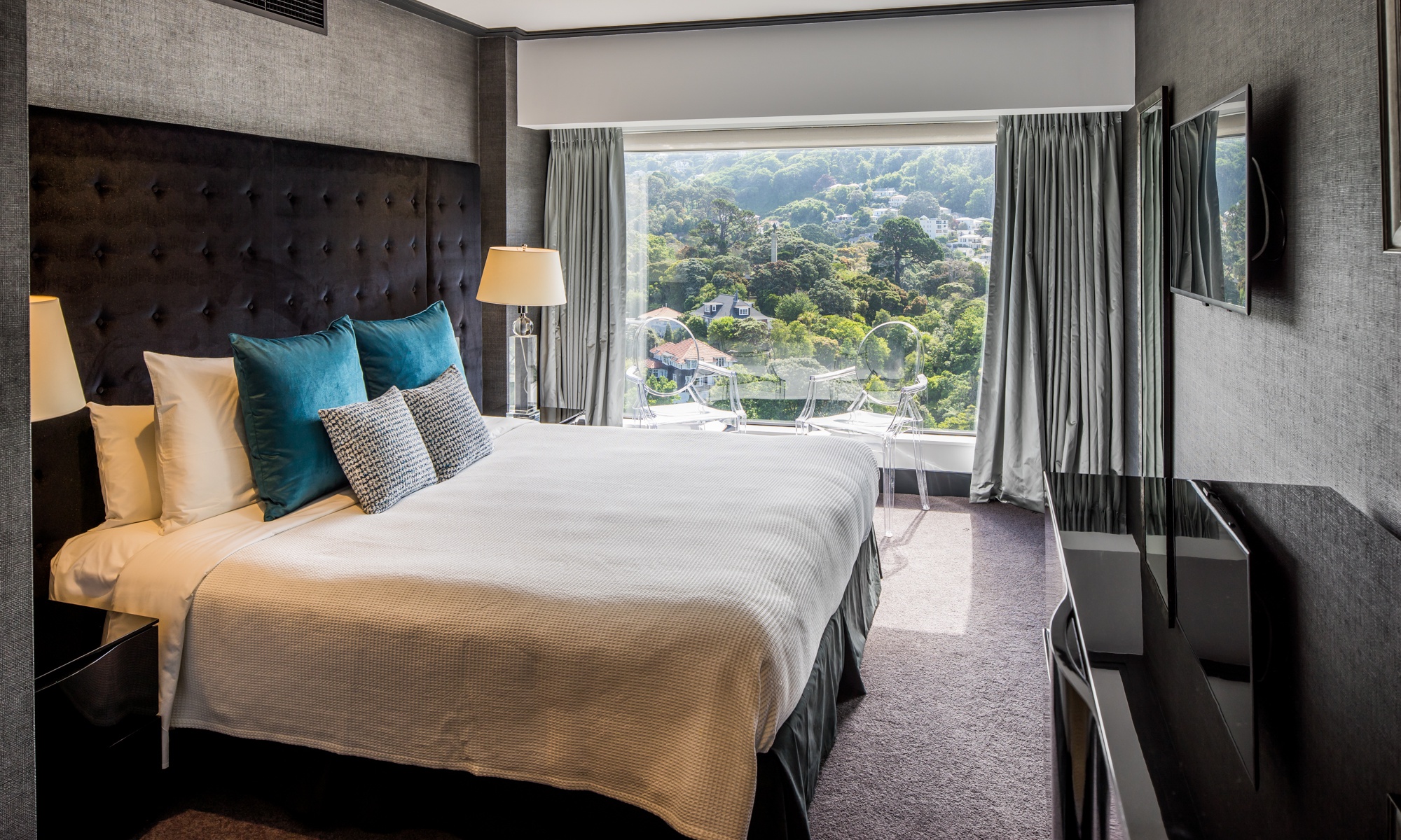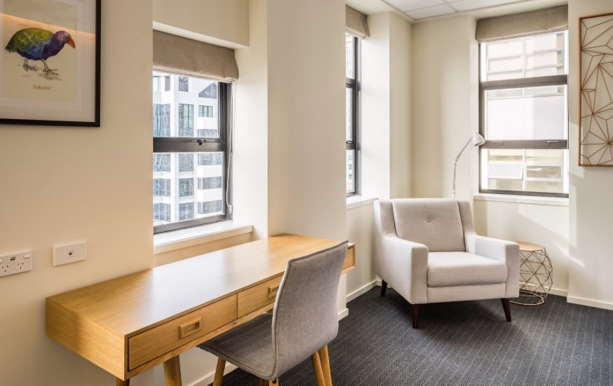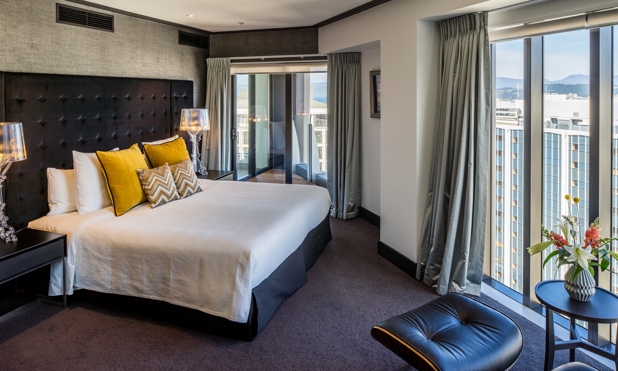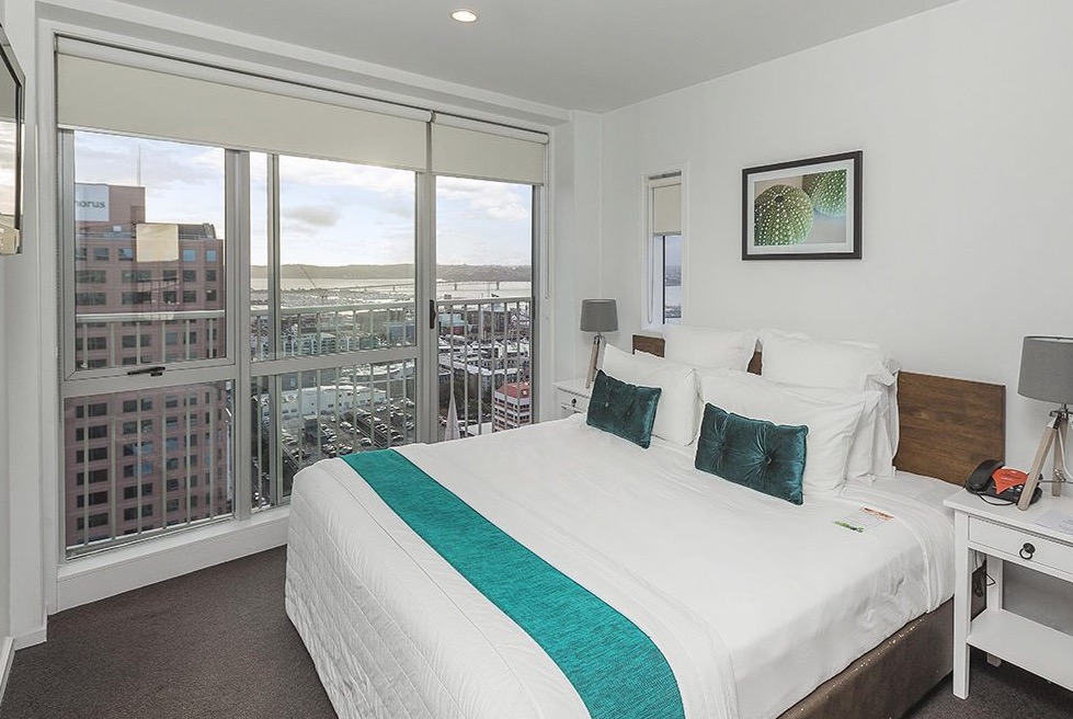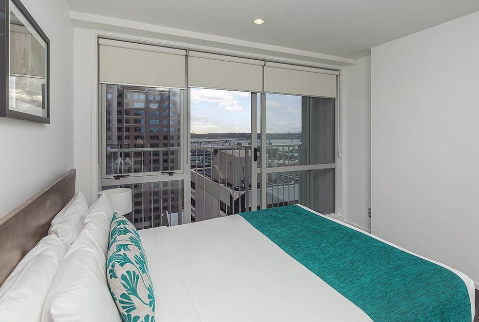 Die 50 m² großen Premier Apartments mit 1 Schlafzimmer bieten den Platz eines Classic Apartments mit 1 Schlafzimmer und eines zusätzlichen Arbeitsbereichs. Sie sind auf den oberen Etagen gelegen und bieten einen herrlichen Blick über den Hafen von Auckland und die Stadt.