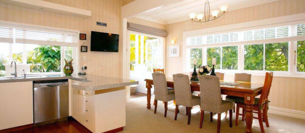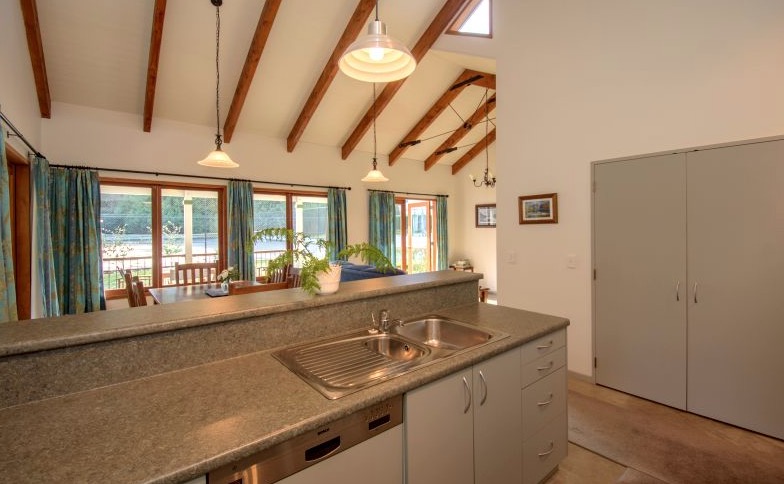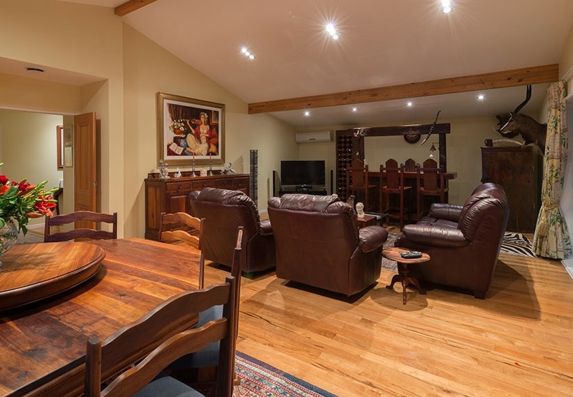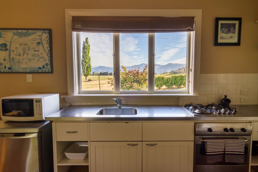 Eine kurze Entfernung vom Haupthaus liegt das Arrotown Cottage. Dieses bietet eine herrlich gemütliche Unterkunft für vier Personen und verfügt über Queensize- und Twin Single Schlafzimmer mit eigenem Bad. Die Wohnbereiche blicken in die Natur mit unzähligen Vogelarten und bis zum Coronet Peak. Die ländliche Chalet-Küche hat alles, was Sie benötigen könnten – vom Toaster und Kaffeekolben bis hin zu Mikrowelle und Geschirrspüler. Mit einem bodenlangen Fenster mit Blick auf den privaten Rasen ist das Cottage hell und freundlich gestaltet. Das offene Design sorgt dafür, dass Sie in der Küche den Anschluss zum angrenzenden Wohn- / Essbereich nicht verpassen. Waschmaschine und Trockner sowie Bügeleisen und Bügelbrett finden Sie ebenfalls in der Küche. Das Arrowtown Cottage verfügt über Fußbodenheizung im gesamten Gebäude sowie kabelloses Breitband für Ihren Laptop und Sky-TV. Auf den geräumigen Sonnenterrassen um das Cottage befindet sich ein Gasgrill. Mit einer eigenen Zufahrtsstraße und einem Autoabstellplatz ist das Arrowcottage der perfekte Rückzugsort für alle, die nach Abgeschiedenheit und Unabhängigkeit suchen.