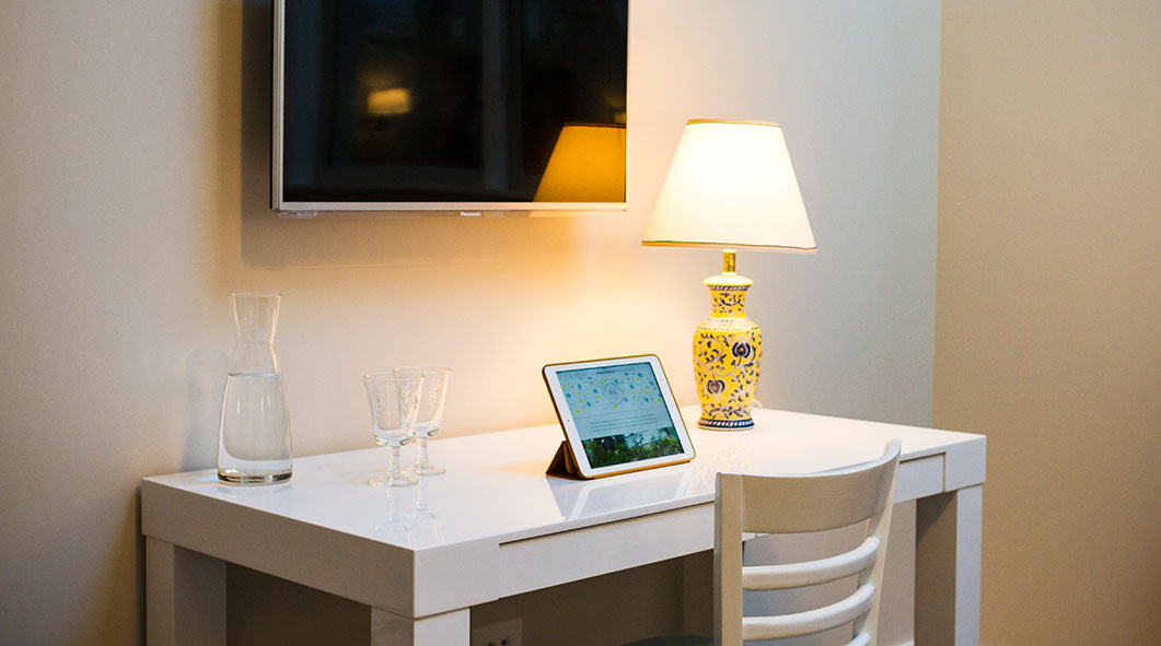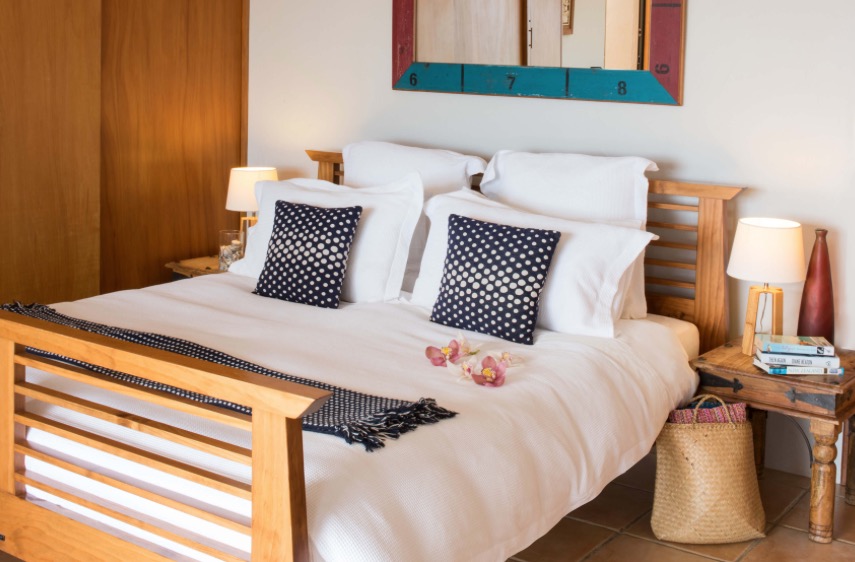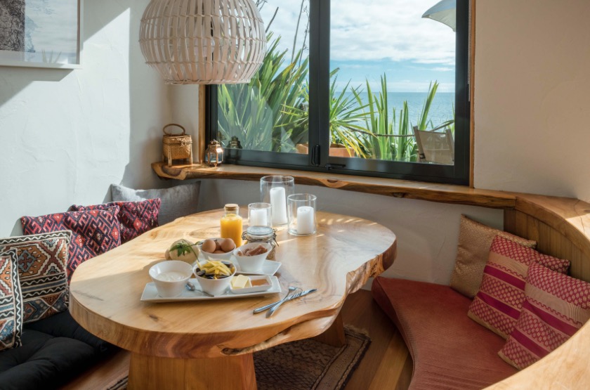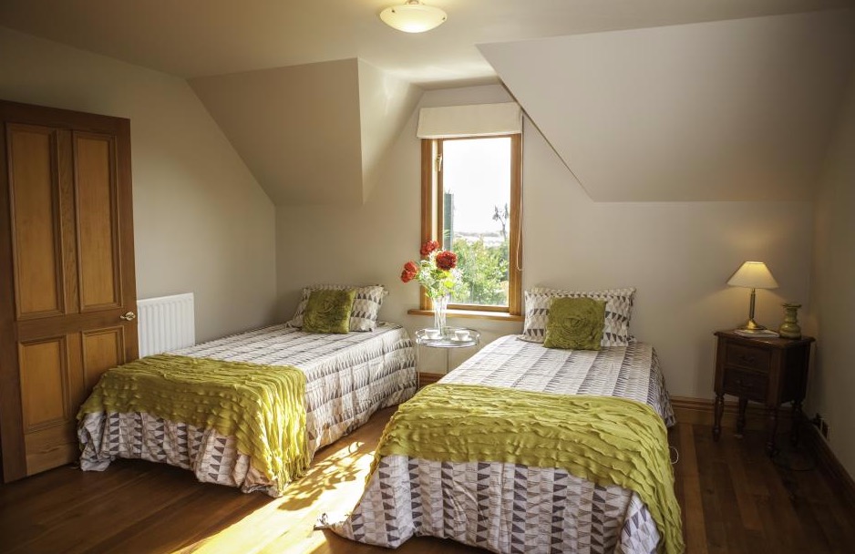 Das Zimmer liegt im Erdgeschoss mit Blick über den Garten auf das Meer. Es verfügt über zwei Einzelbetten, einen eigenen Wintergarten und einem direkten Zugang zu einer Holzterrasse, die von Flachsgewächsen wunderschön umrahmt ist.