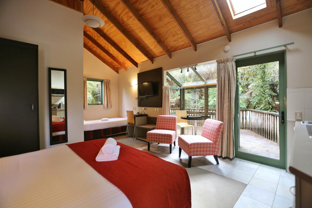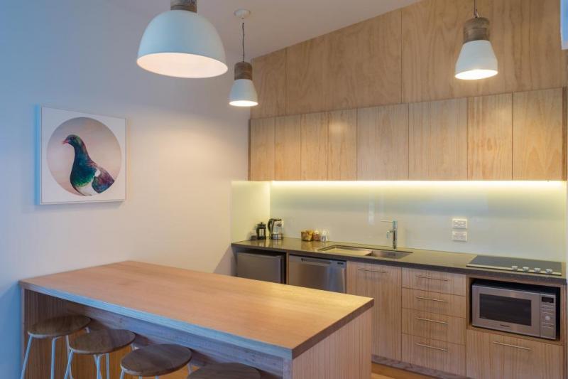 Das geräumige, unabhängige Apartment (37 qm) mit 1 Schlafzimmer verfügt über einen separaten Wohnbereich sowie einen Ess- und einen Arbeitsbereich. In der Küche stehen Ihnen eine Mikrowelle, ein Kühlschrank, ein Wasserkocher und Besteck zur Verfügung. Auch ein Safe, ein großes Bad, Kaffee- und Teezubehör und ein Flachbild-TV mit neuseeländischen Sat-Kanälen sind vorhanden.