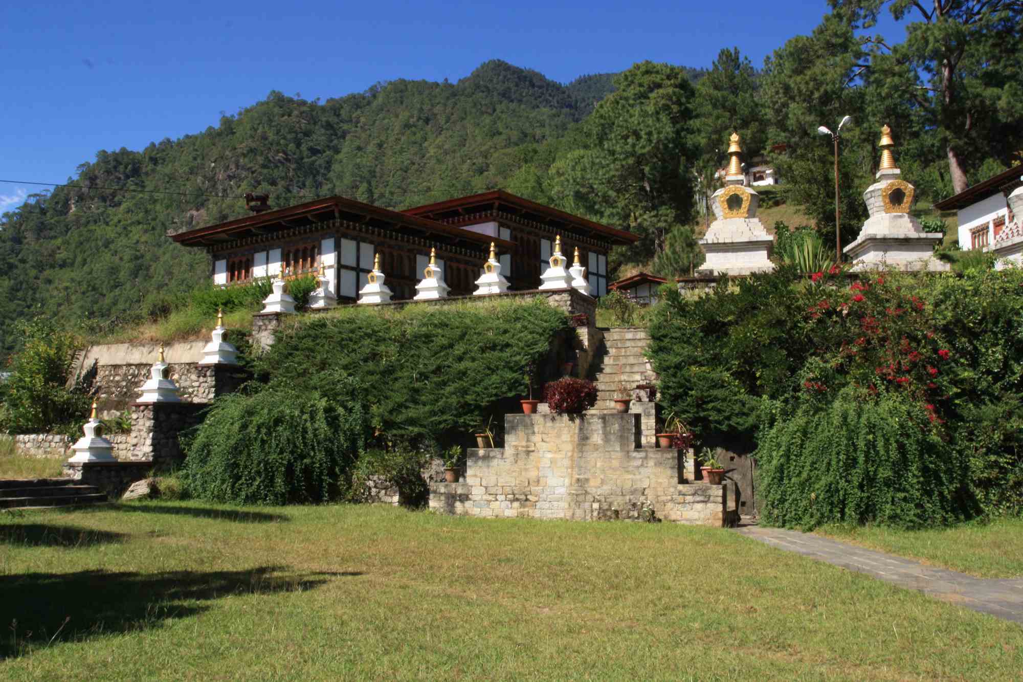 Im Anschluss fährst du in ein Nonnenkloster, in dem du alleine oder unter Anleitung meditierst. Nun hast du Zeit, den bhutanesischen Buddhismus aus einer anderen Perspektive kennenzulernen und erste praktische Erfahrungen zu sammeln. Später wanderst du zum Khamsum Yuelley Namgay Chorten. Hier wartet nicht nur buddhistische Kunst auf dich, sondern auch eine schöne Aussicht auf die umliegenden Berge. Der Abstieg dauert selbst in gemütlichem Tempo nur 25 Minuten.