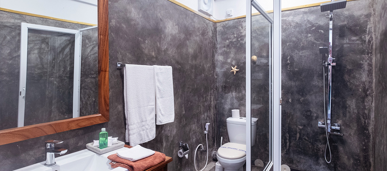 Alle Zimmer sind zum Meer hin ausgerichtet und haben einen Balkon. Hier kannst du abends entspannen, während die Sonne untergeht. Zur Verfügung stehen dir außerdem eine Dusche, ein WC, ein Föhn, ein Telefon, ein Safe, ein Ventilator, eine Klimaanlage, ein Moskitonetz und WLAN.