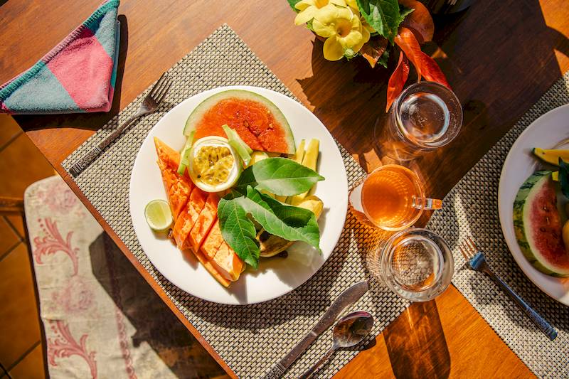 Im Ayurveda ist Nahrung Medizin – deshalb spielt deine Ernährung während des Aufenthalts eine zentrale Rolle. Du bekommst frisch zubereitete Mahlzeiten auf der Basis von Obst, Gemüse, Reis und Hülsenfrüchten, gelegentlich ergänzt durch Ei oder frischen Fisch. Alles wird nach ayurvedischen Prinzipien gekocht – mit Bio-Zutaten aus dem eigenen Garten und von regionalen Partnerhöfen.