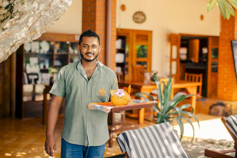 Die Eigentümerin des Resorts, Tina ist auf Sri Lanka geboren und kümmert sich mit charmanter Offenheit um ihre Gäste. Dich erwarten eine liebevolle Atmosphäre und ein geschützter Rahmen für deine Kur.